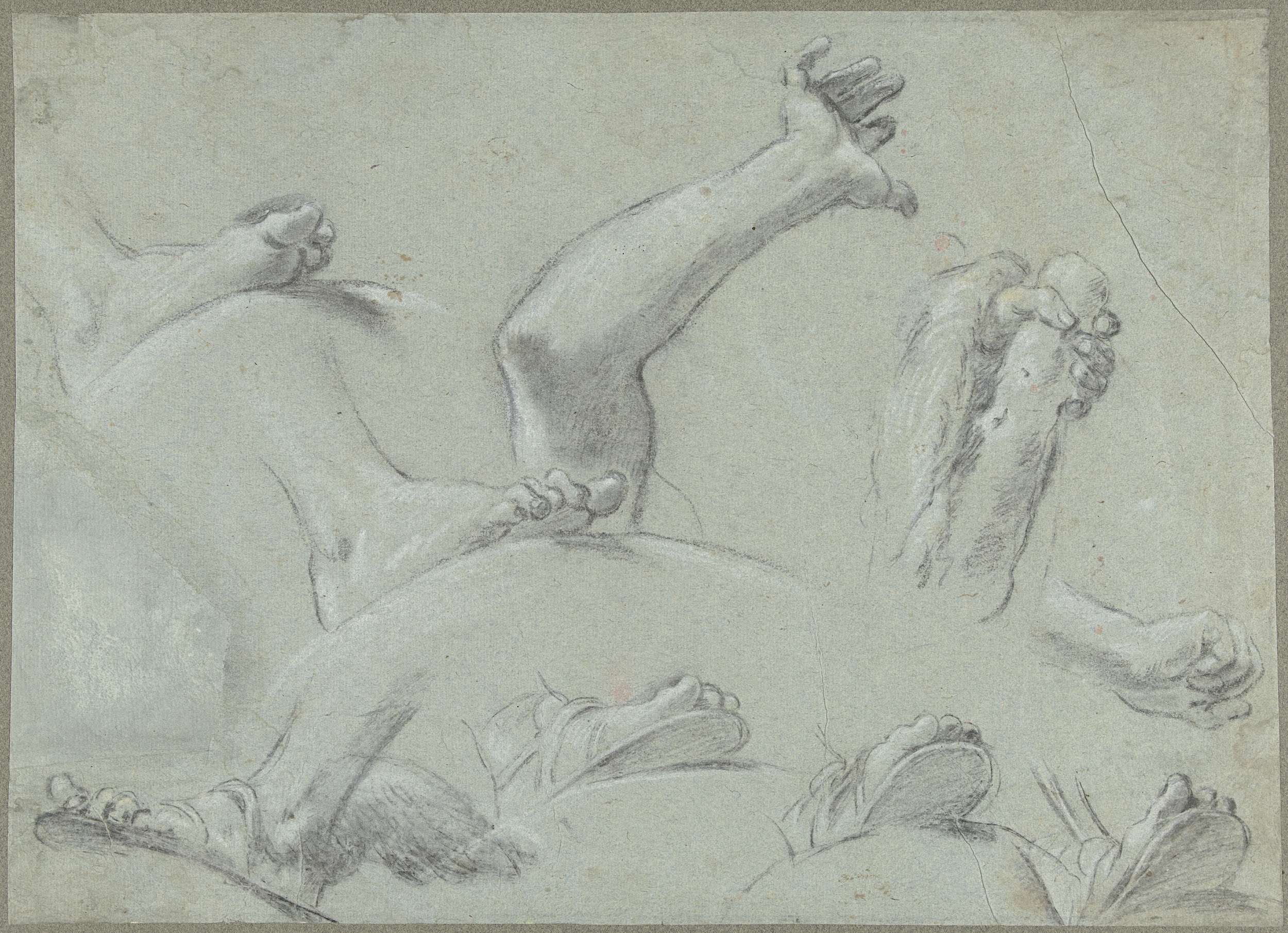Schetsblad met studies van voeten, handen en een arm