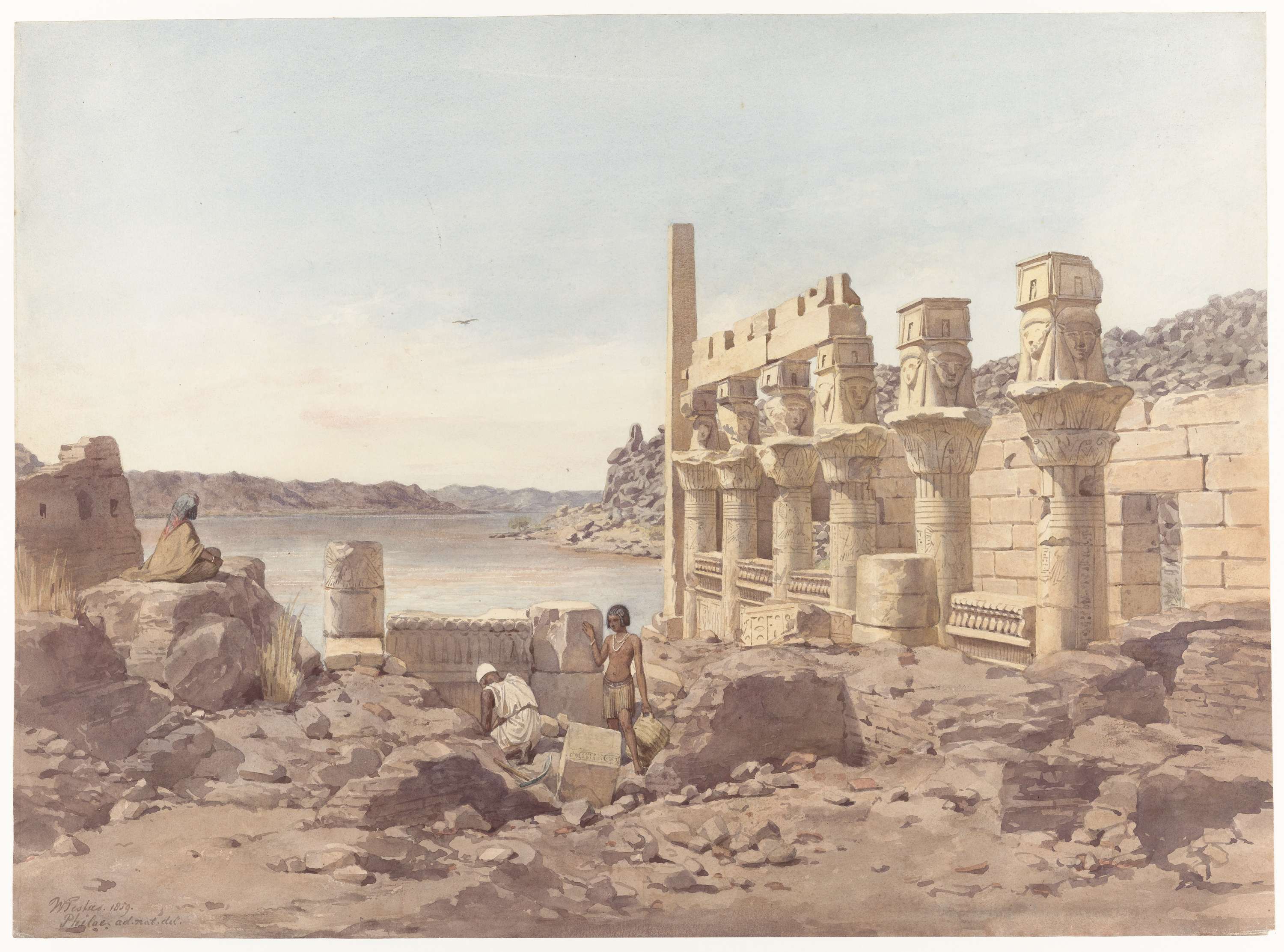 Gezicht op de tempelruïnes te Philae bij Aswan