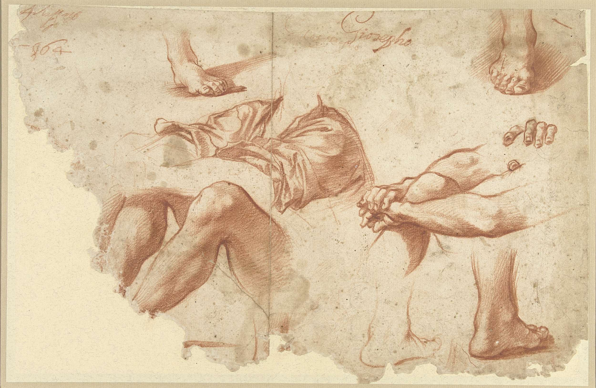 Fragment van studieblad met armen, benen, voeten