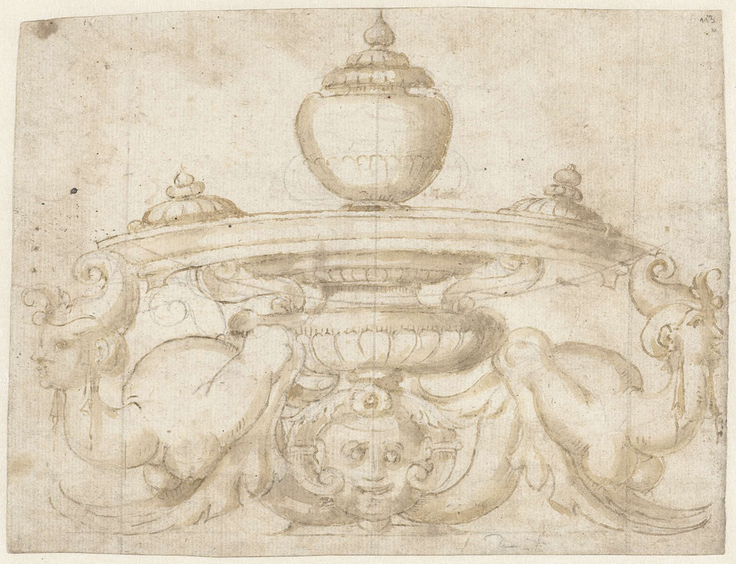 Vaasmotief geschraagd door twee najade-achtige figuren