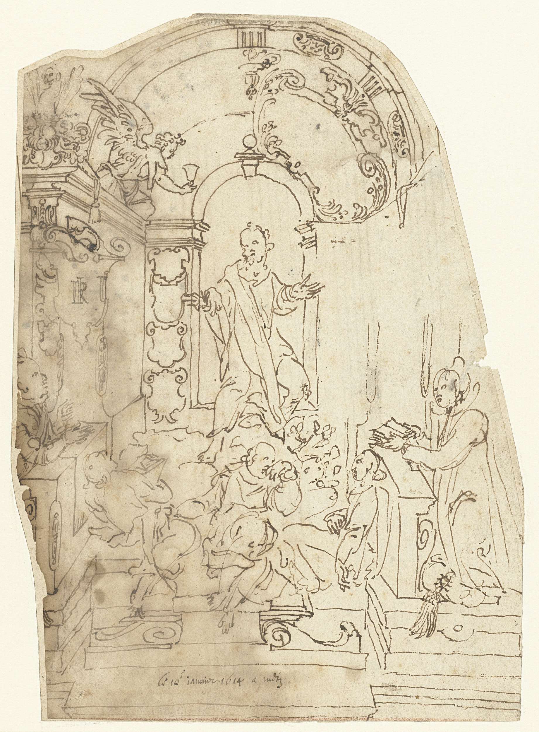 Ontwerp voor een grafmonument in de koorkapel van de kathedraal te Metz, met de verrijzenis van Christus en twee stichters.