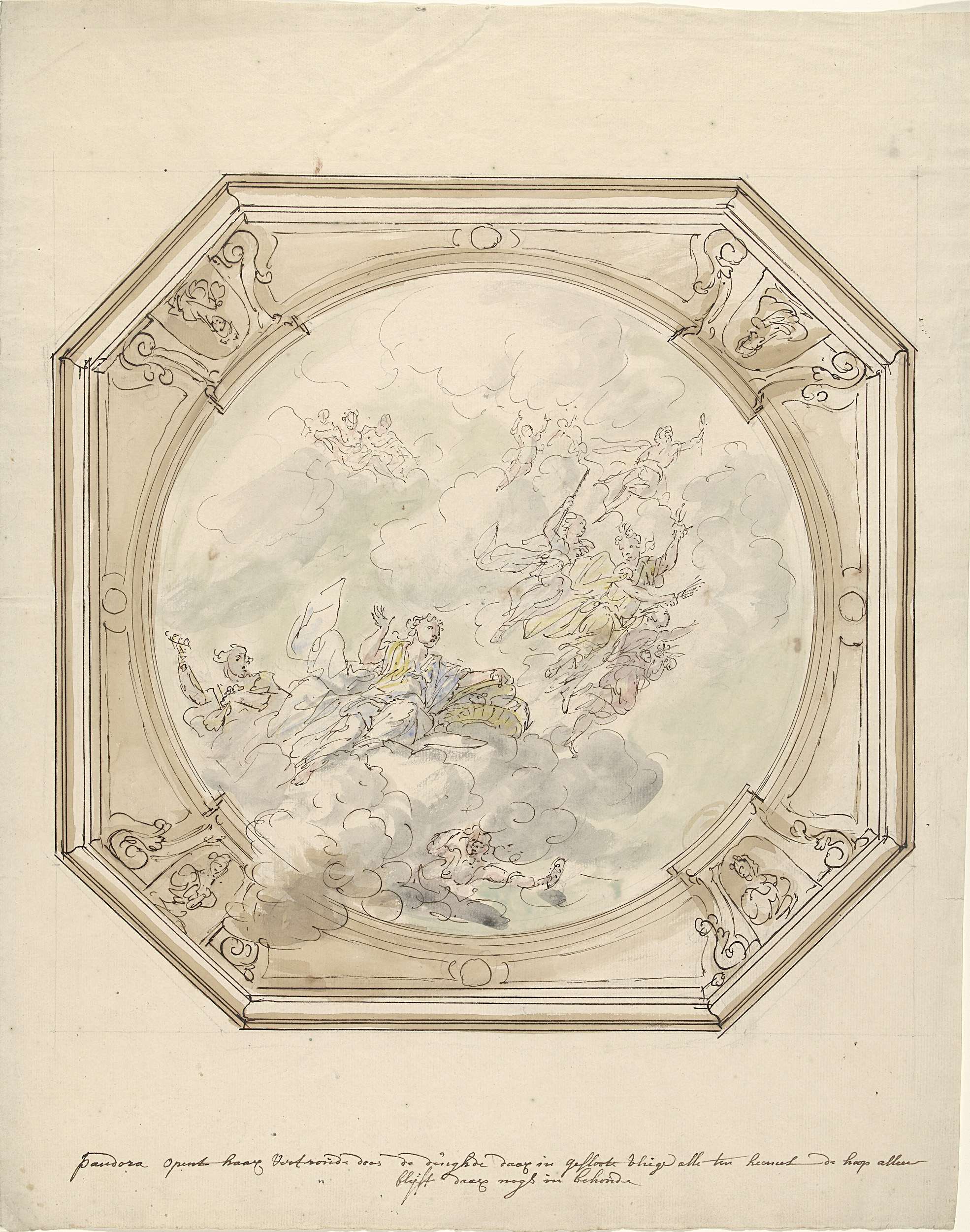 Ontwerp voor een plafondschildering met de doos van Pandora