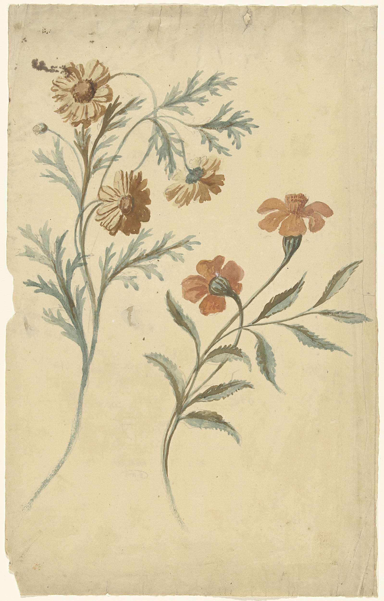 Bloemstudie van een rode en een bruine bloem