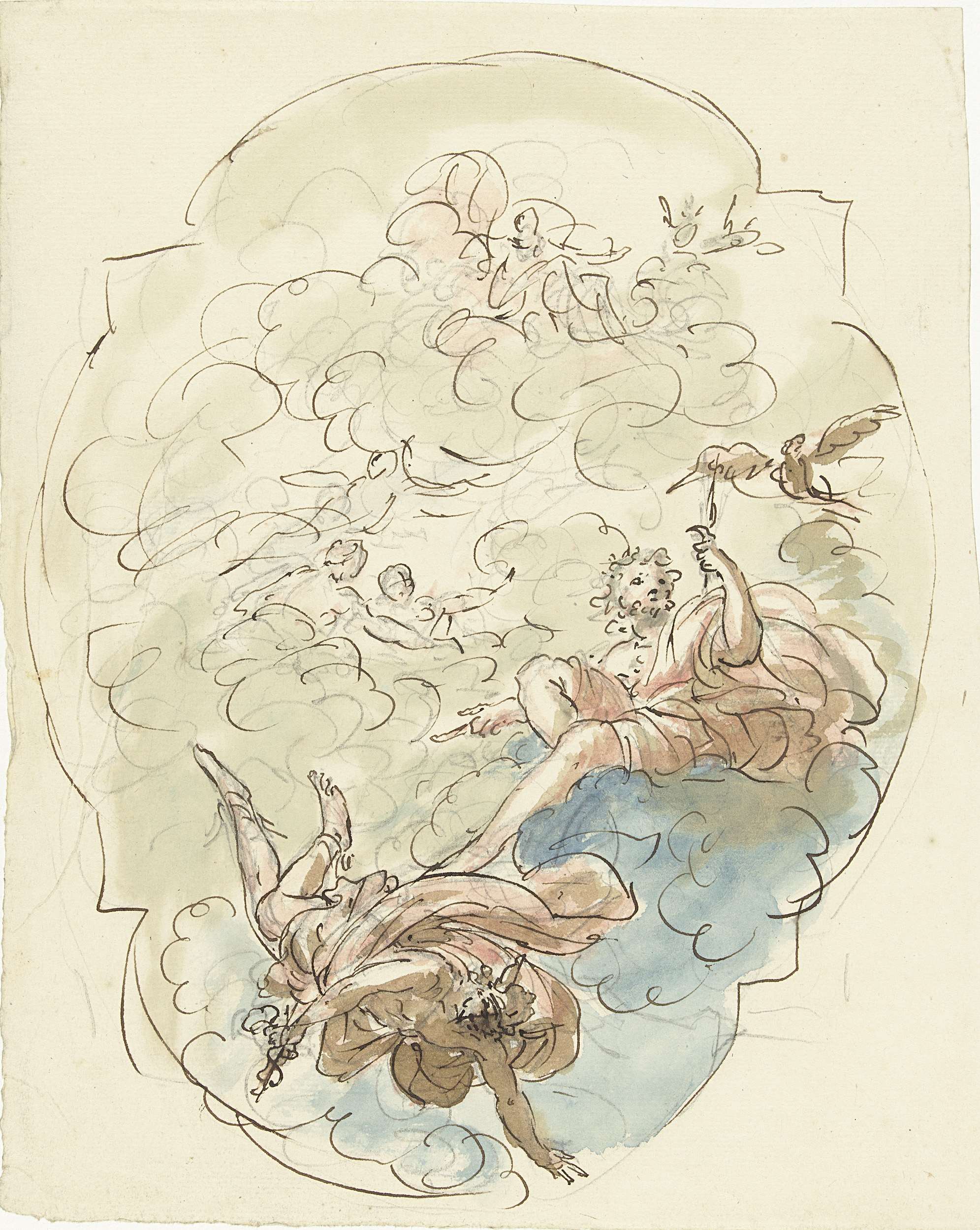 Ontwerp voor een plafondschildering met Jupiter en Mercurius