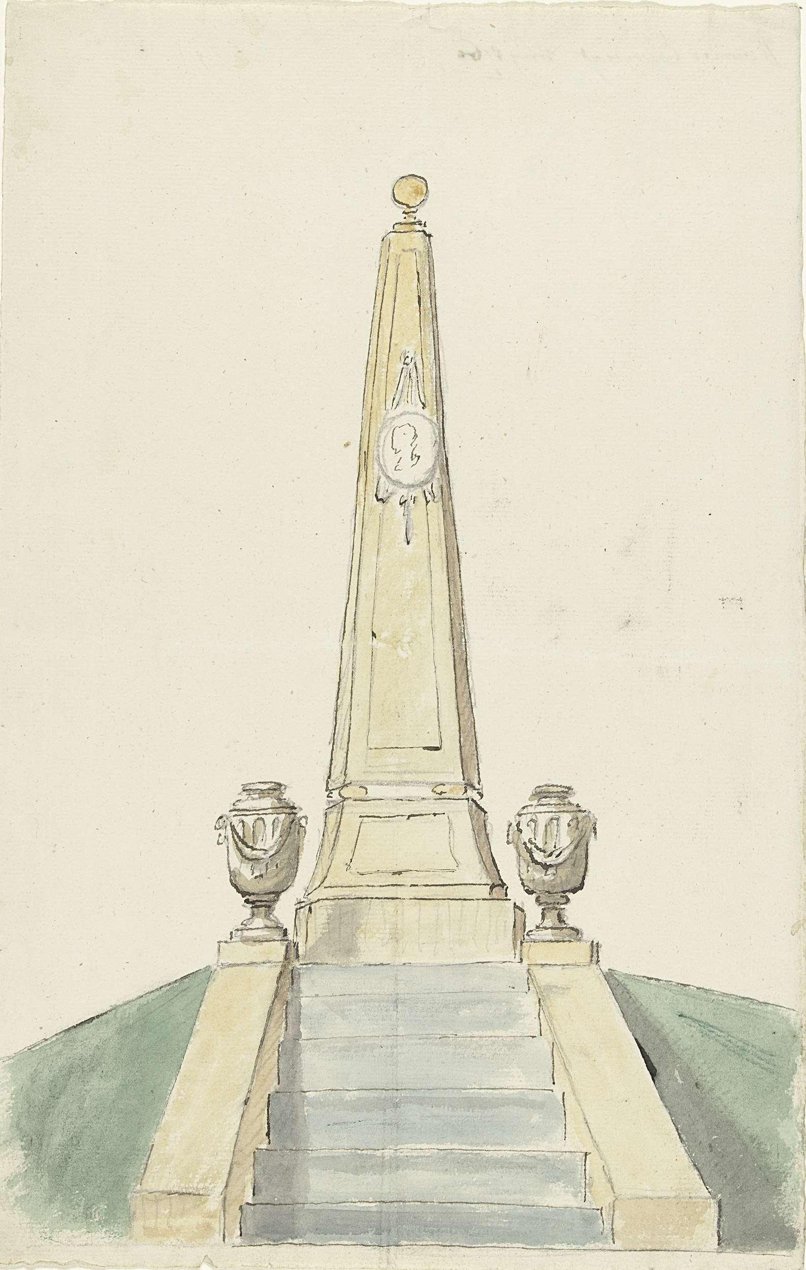 Obelisk met trap en twee urnen