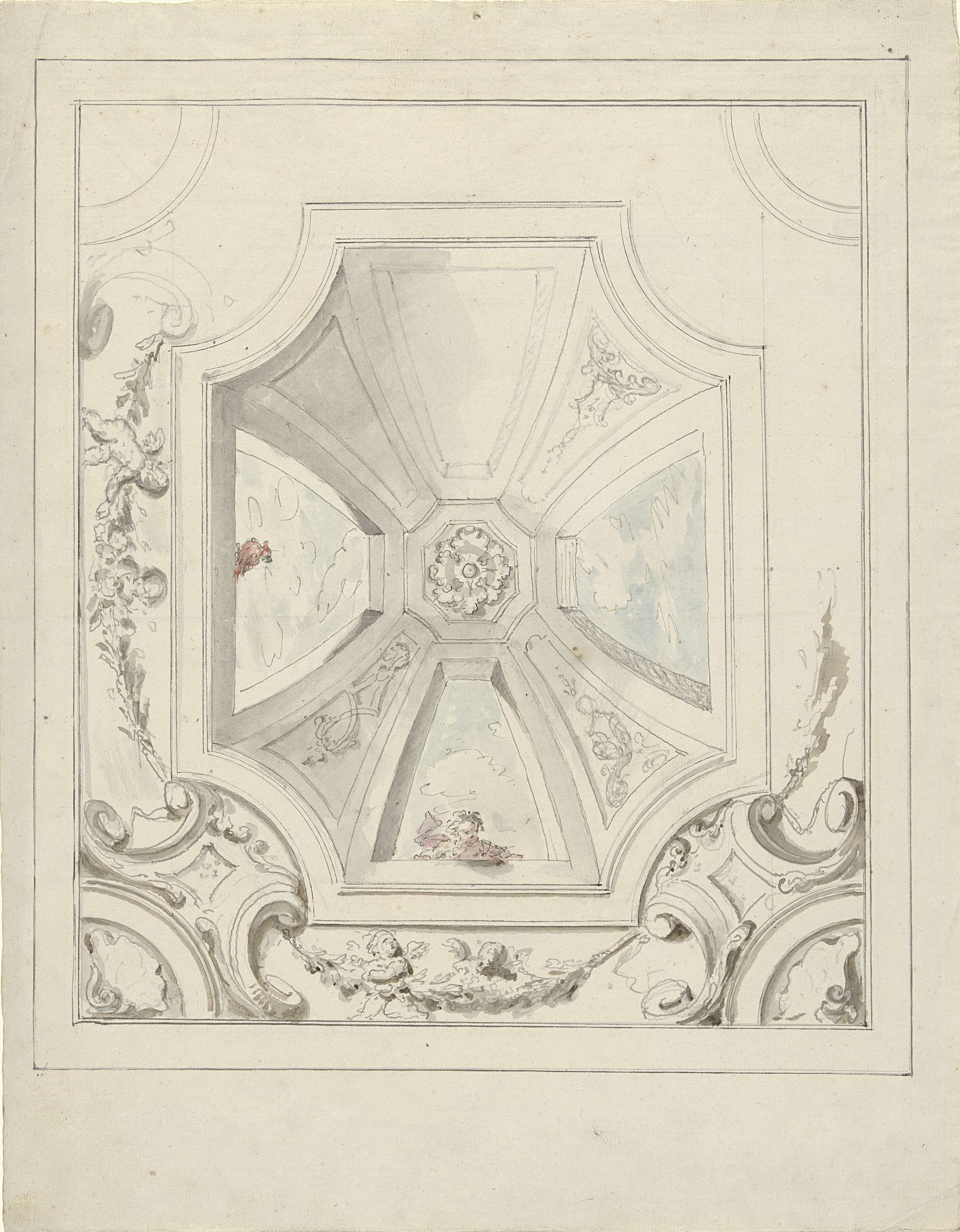 Ontwerp voor een plafondschildering met gezicht in een achtkantige koepel