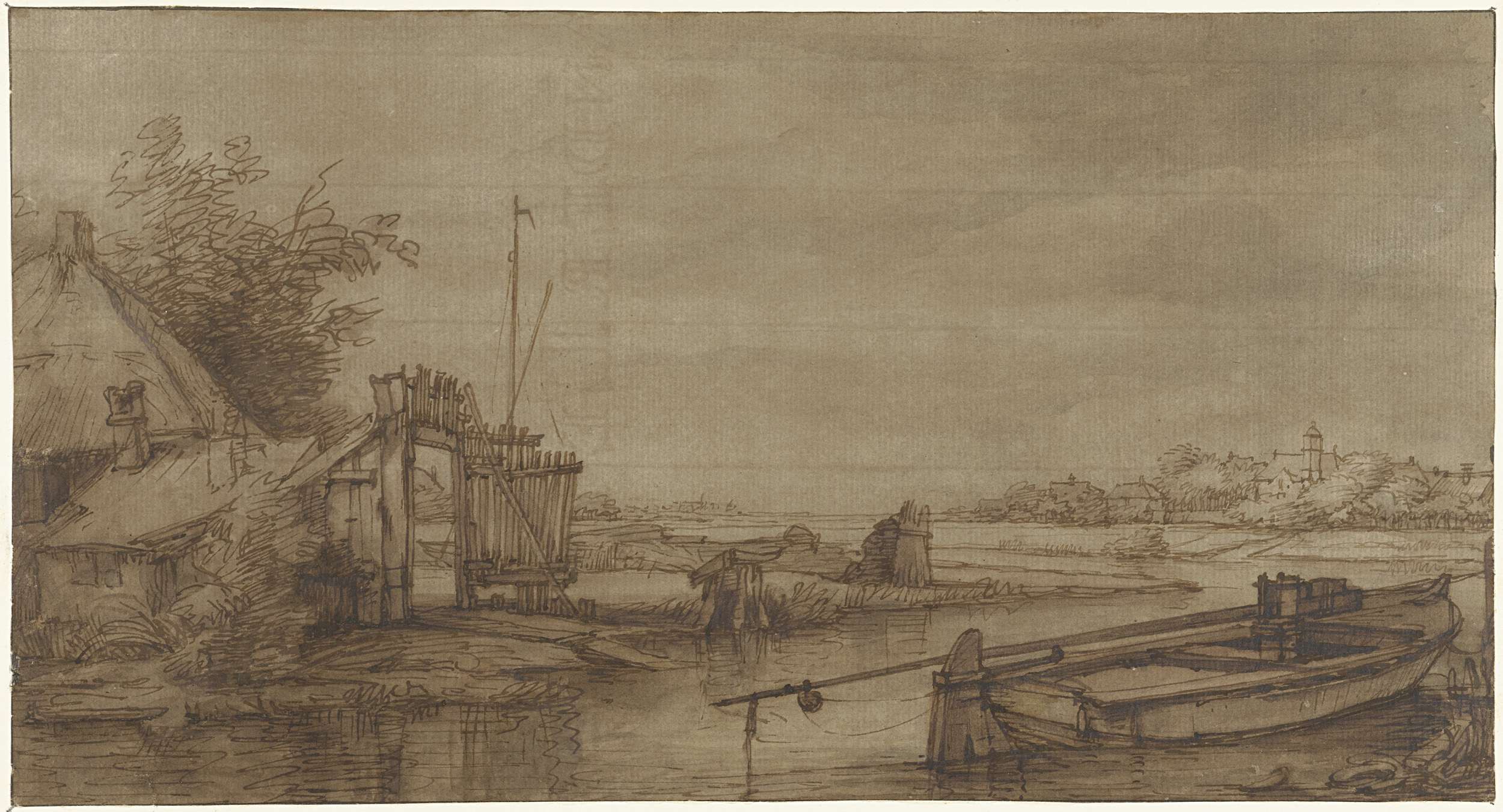 Vaartgezicht met boerderij en liggende schuit
