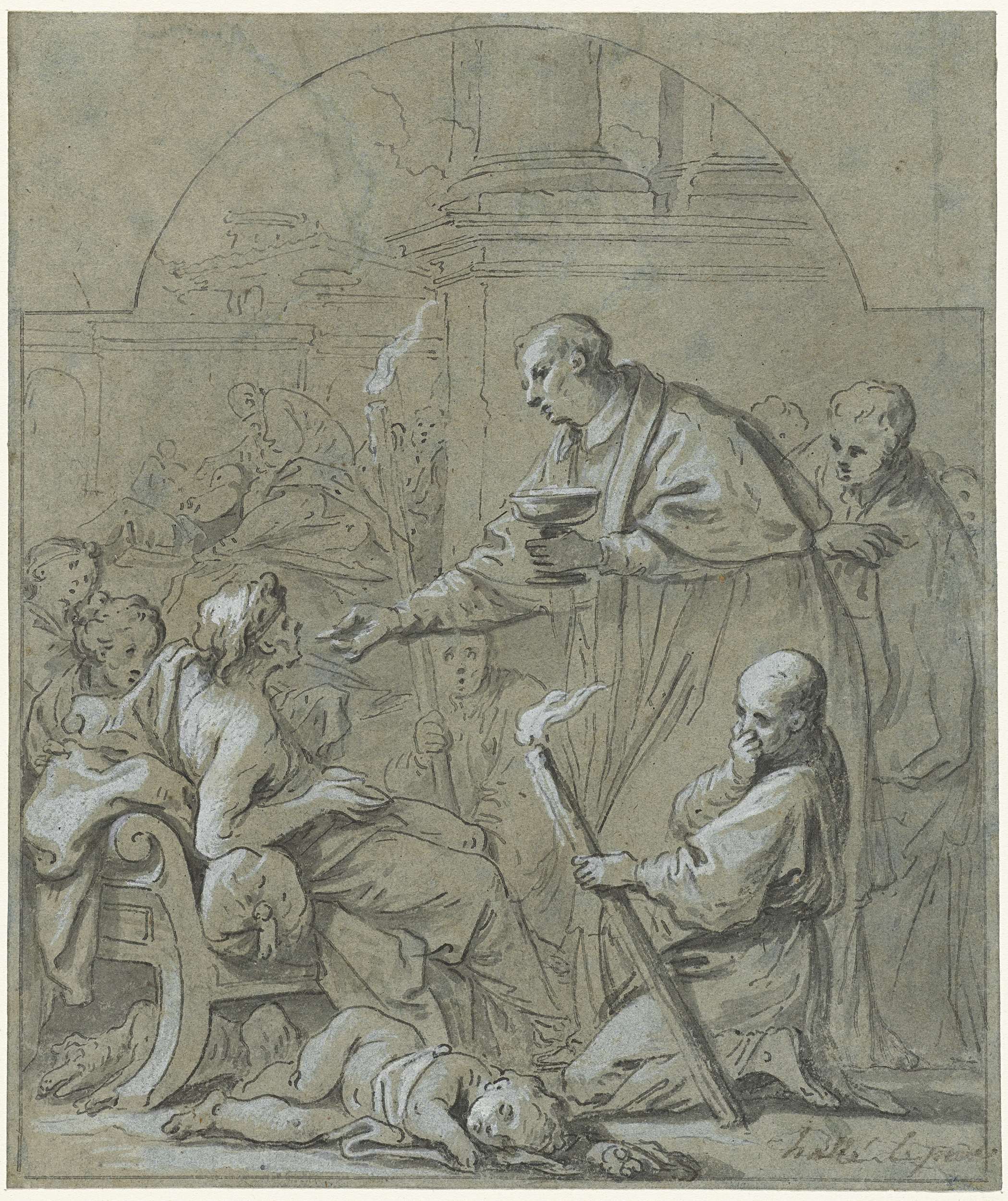 Heilige Carolus Borromeus geeft pestlijders de laatste Communie