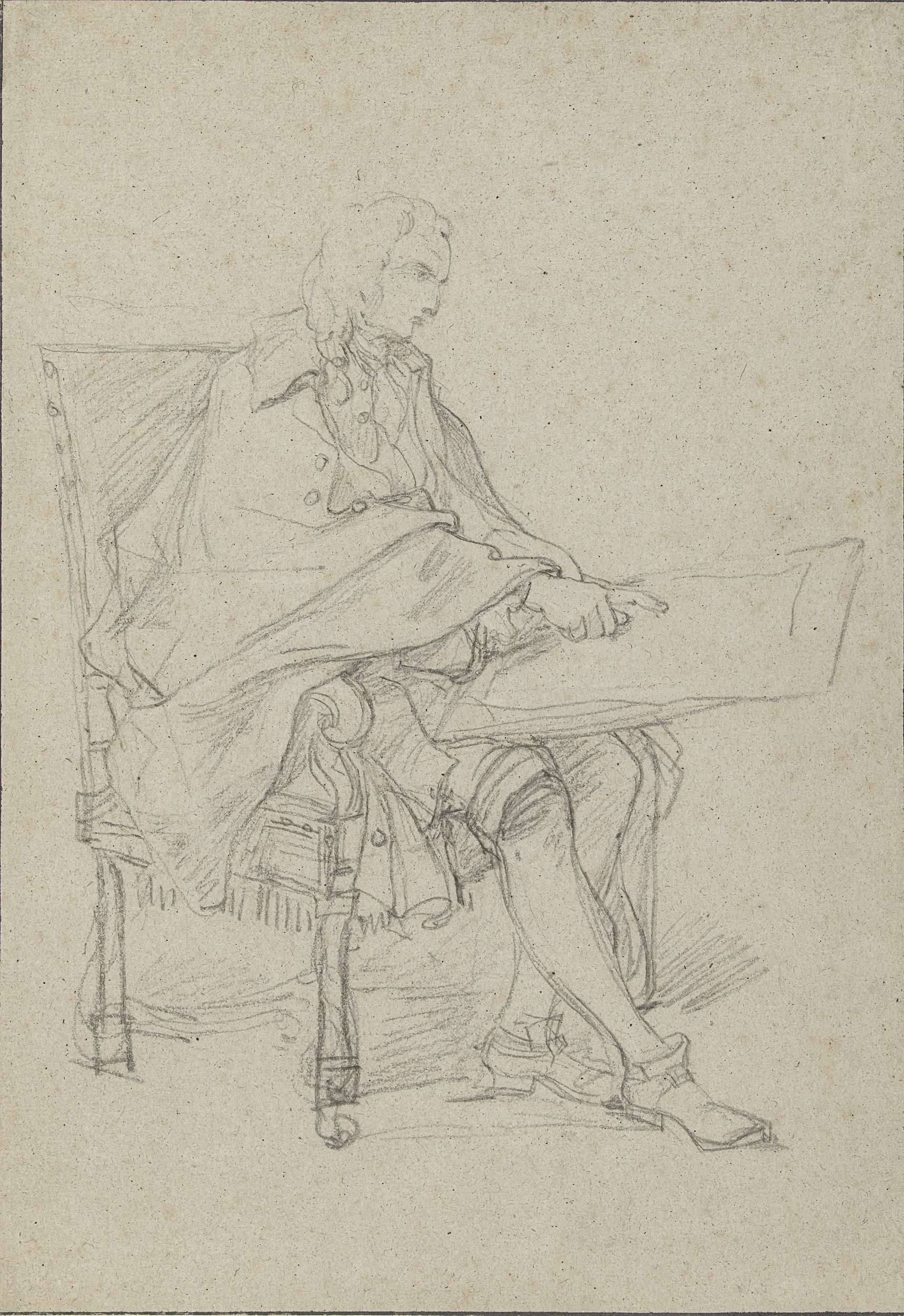 Waarschijnlijk Charles Joseph Natoire zelf zittend met een blad op zijn schoot.