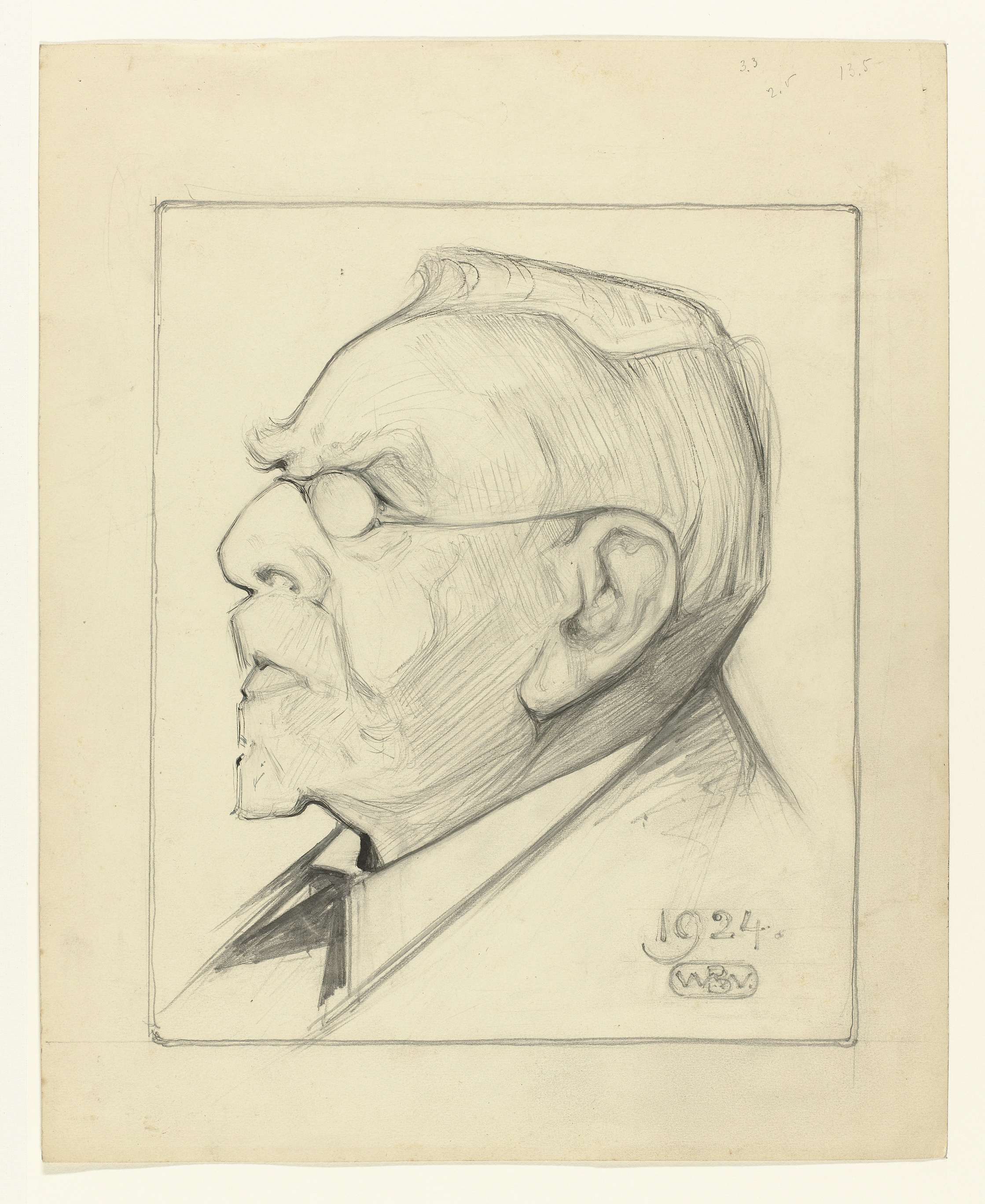 Portret van August Allebé; op verso een afdruk van de Leeuwen koning.