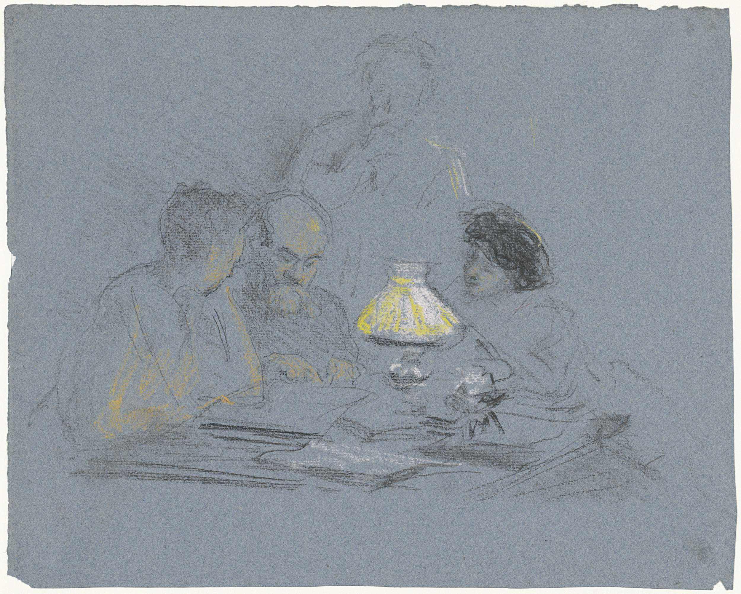 A. Grandmont en drie figuren, lezend bij lamplicht