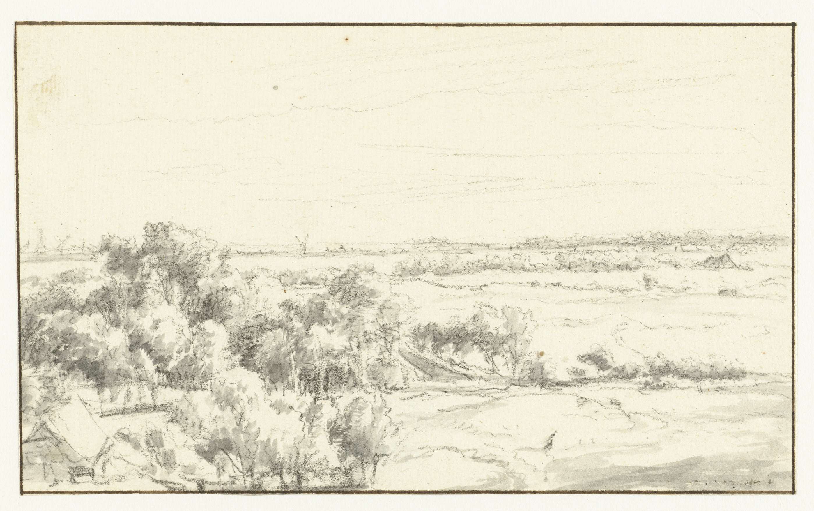 Gezicht vanaf de duinen over uitgestrekt landschap