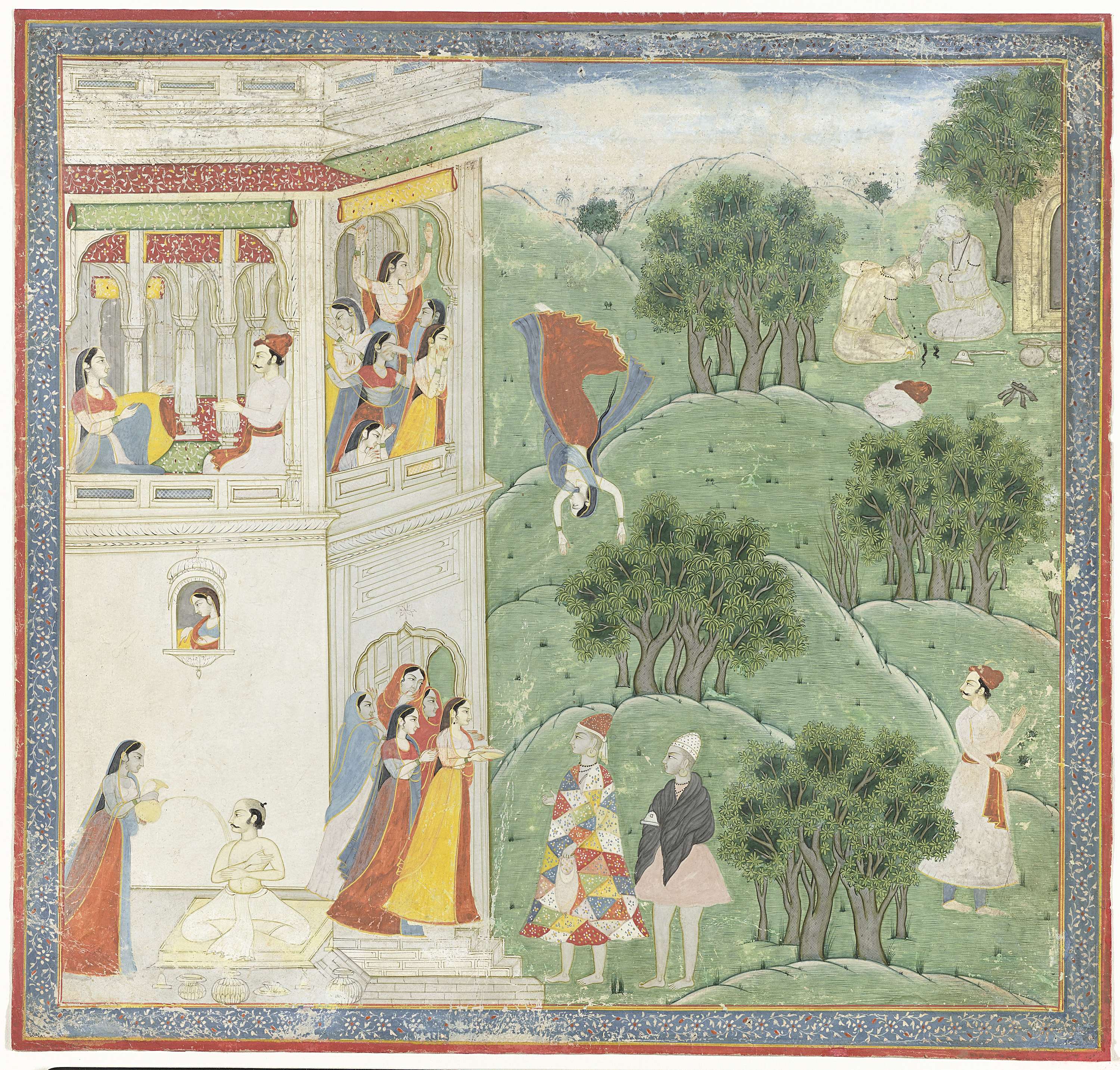 De geschiedenis van een echtgenoot die zich in een klooster begeeft, waarop zijn vrouw zich uit wanhoop van de bovenverdieping van het huis stort.