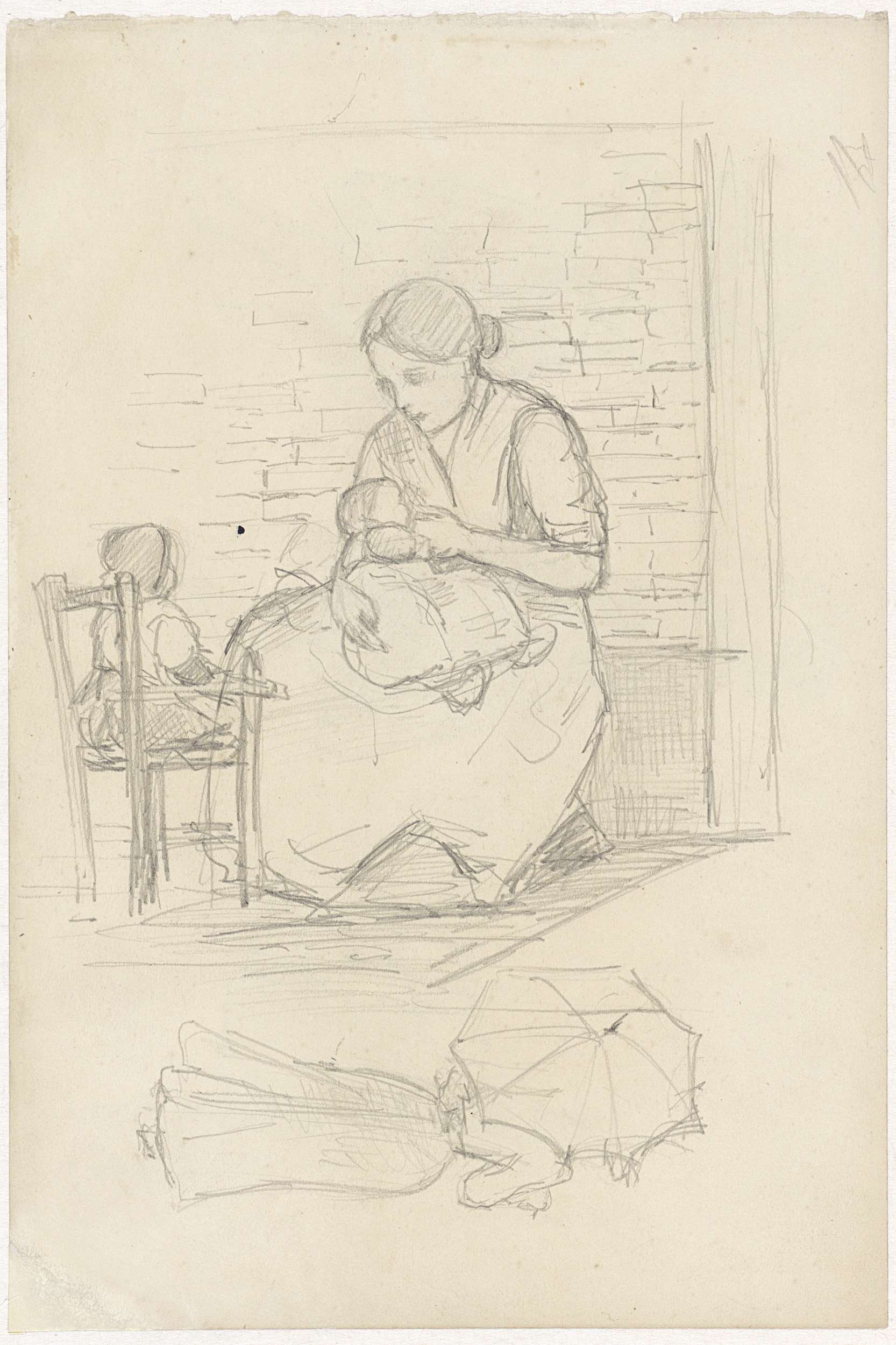 Vrouw met twee kinderen en een vrouw met een paraplu
