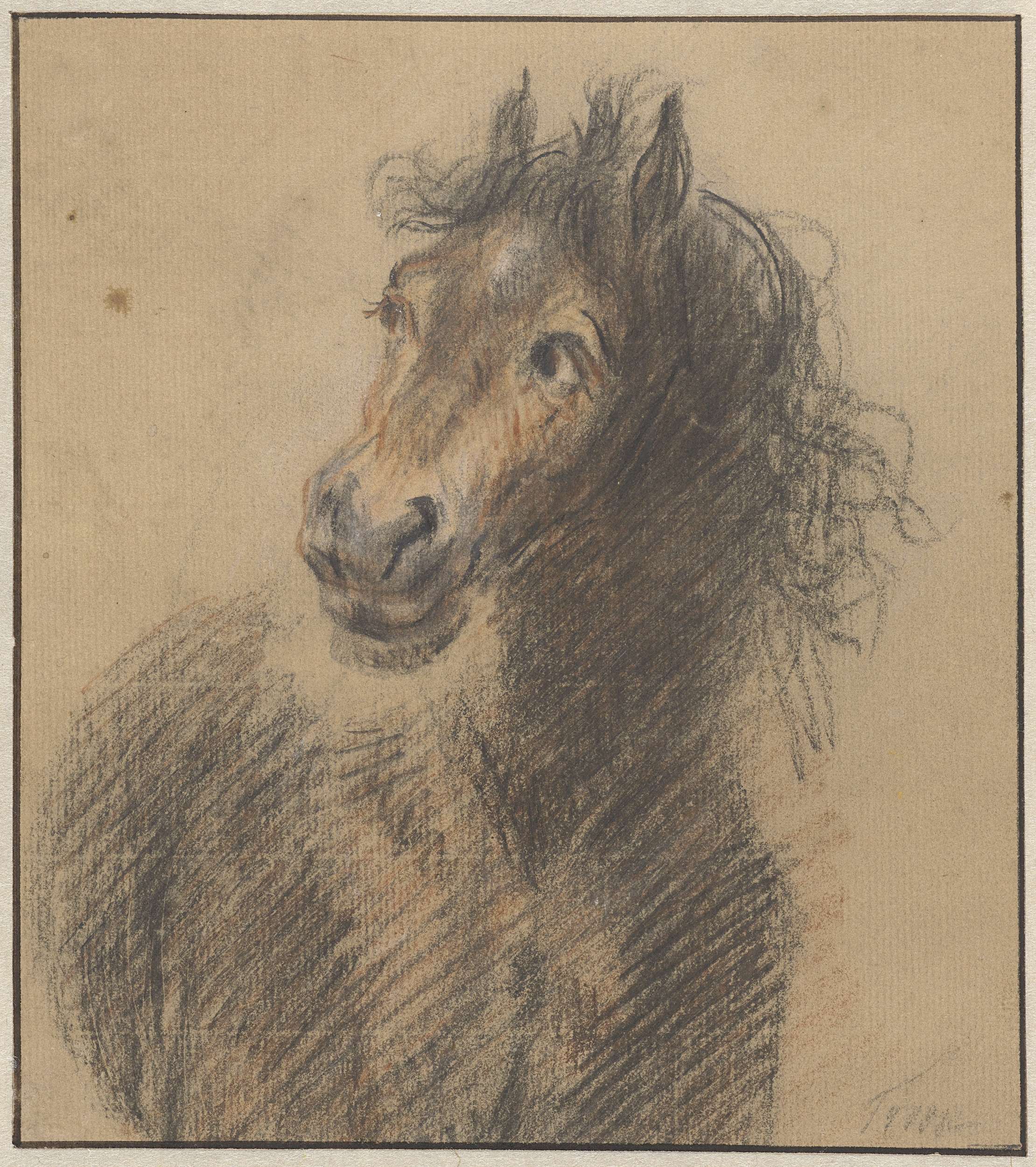 Paard, van voren gezien, de kop naar links