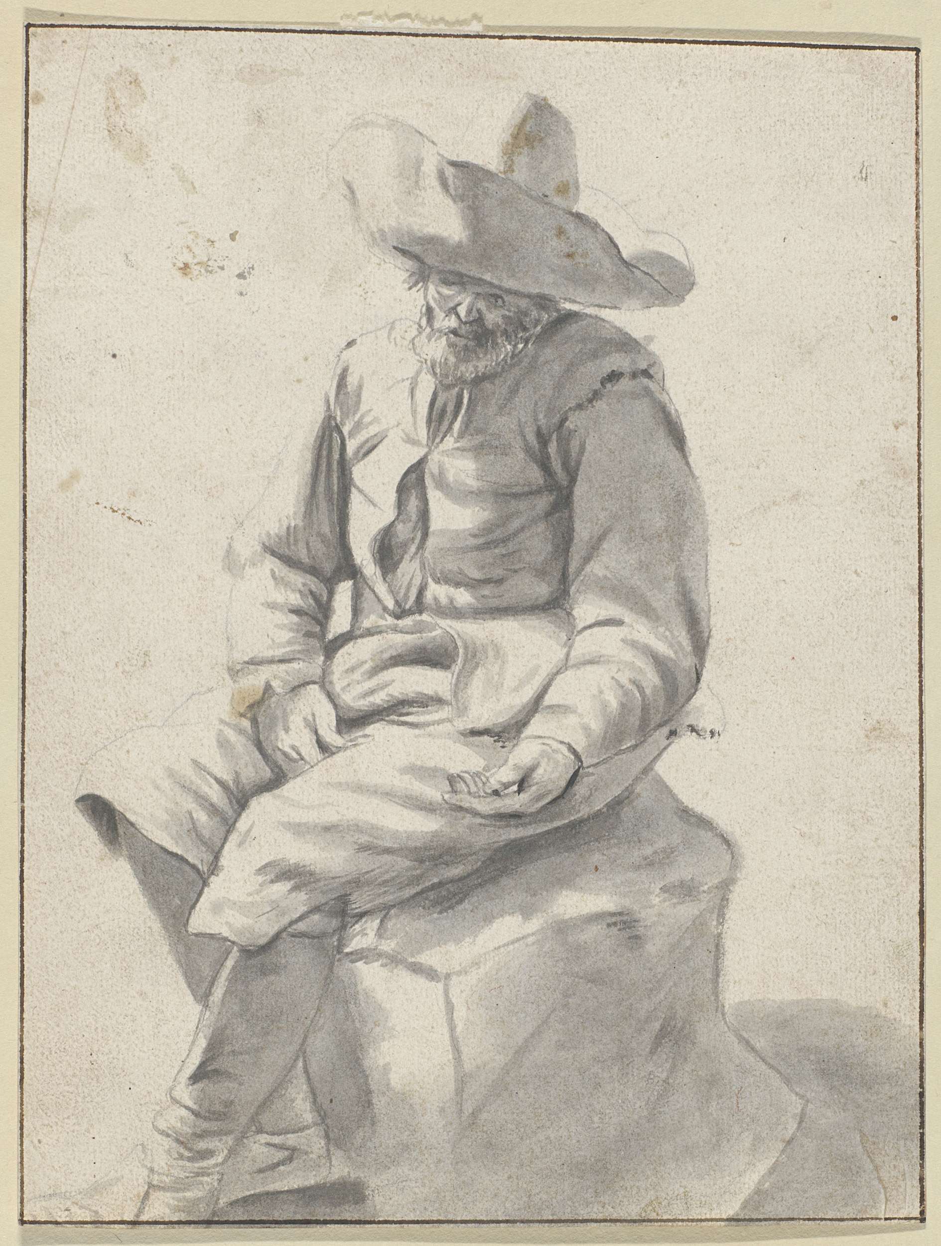 Zittende man met hoed