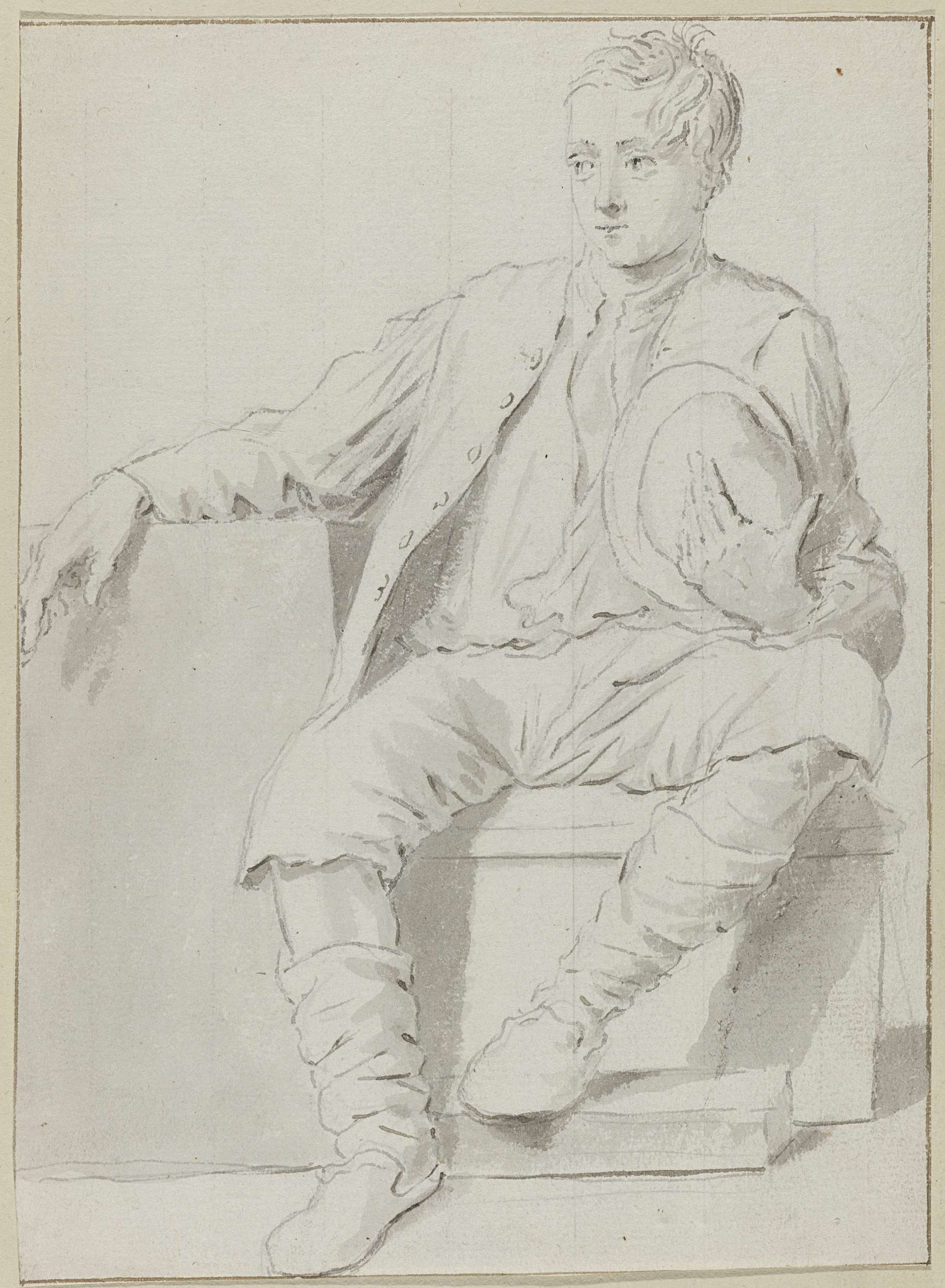 Zittende man met een hoed tegen zijn borst
