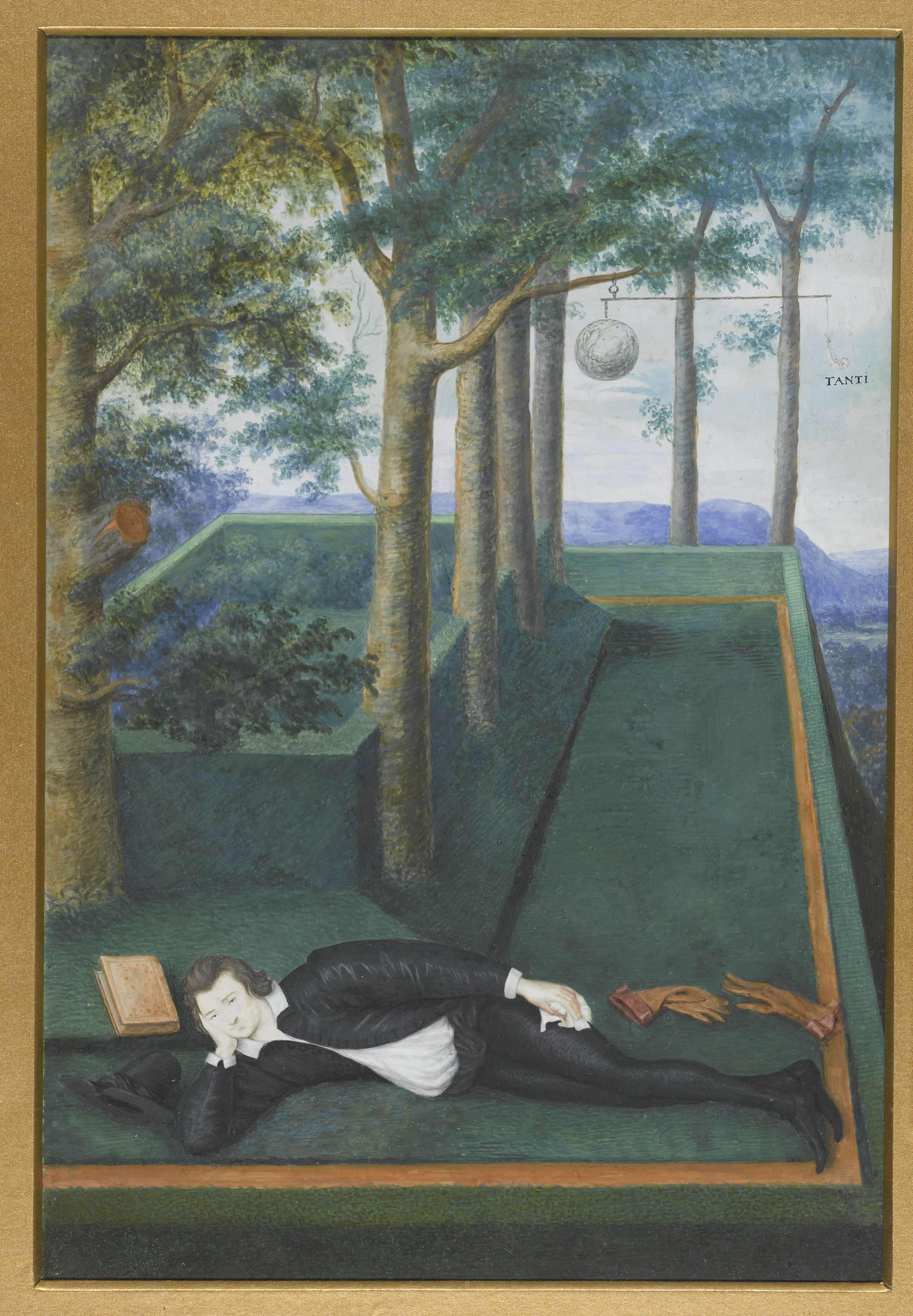 Portret van een liggende edelman in een begroeide hof; Portret van Henry Percy, 9th Earl of Northumberland