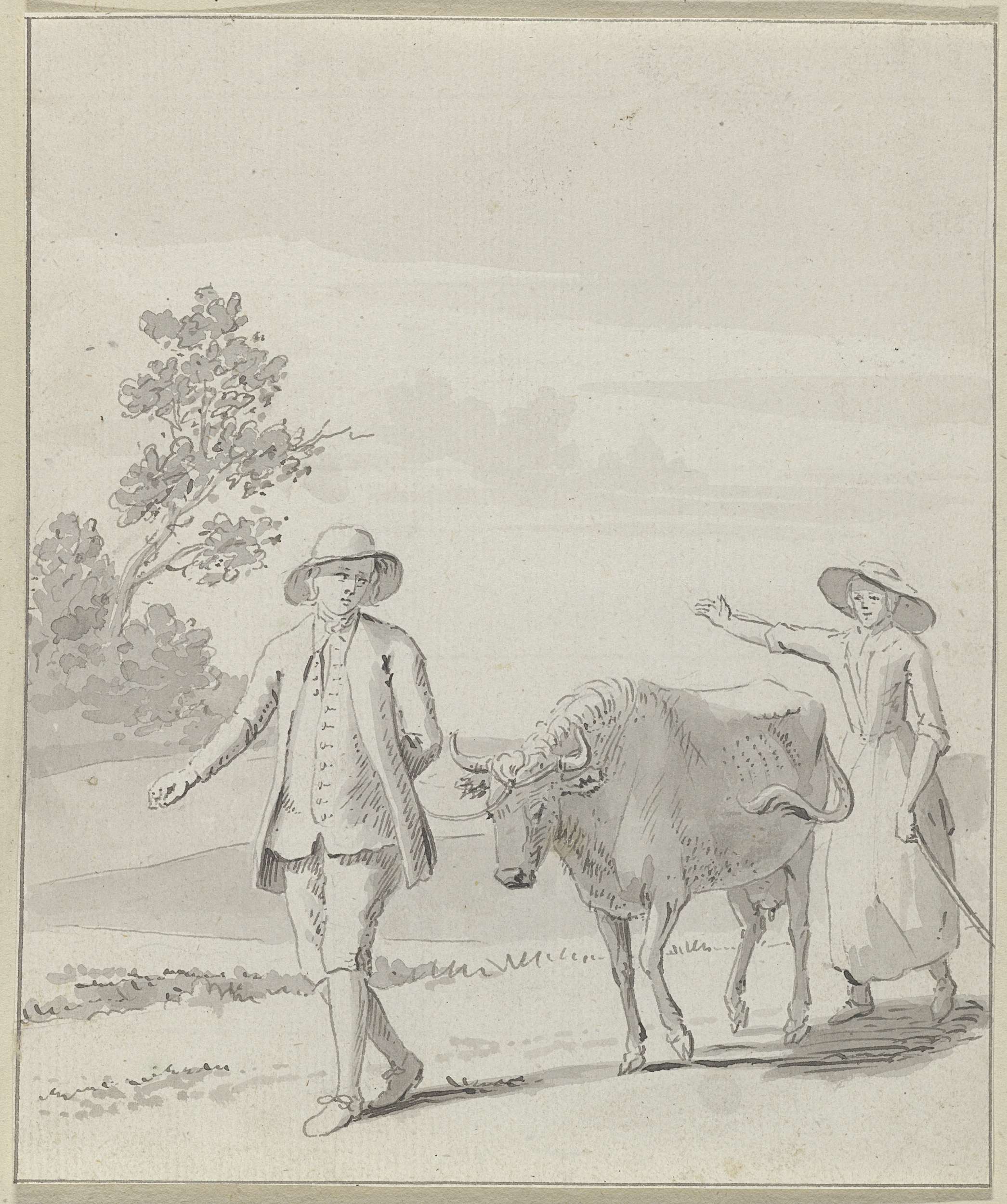 Man en vrouw met koe in landschap