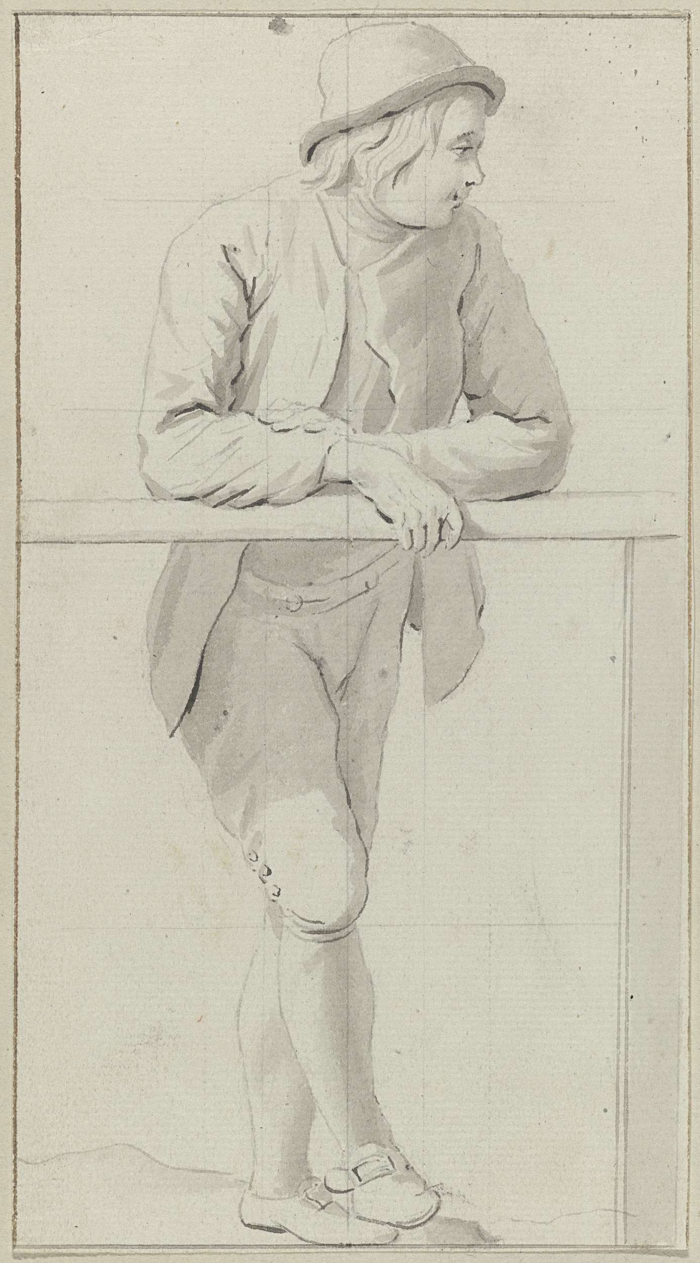Staande jongeling met hoofddeksel