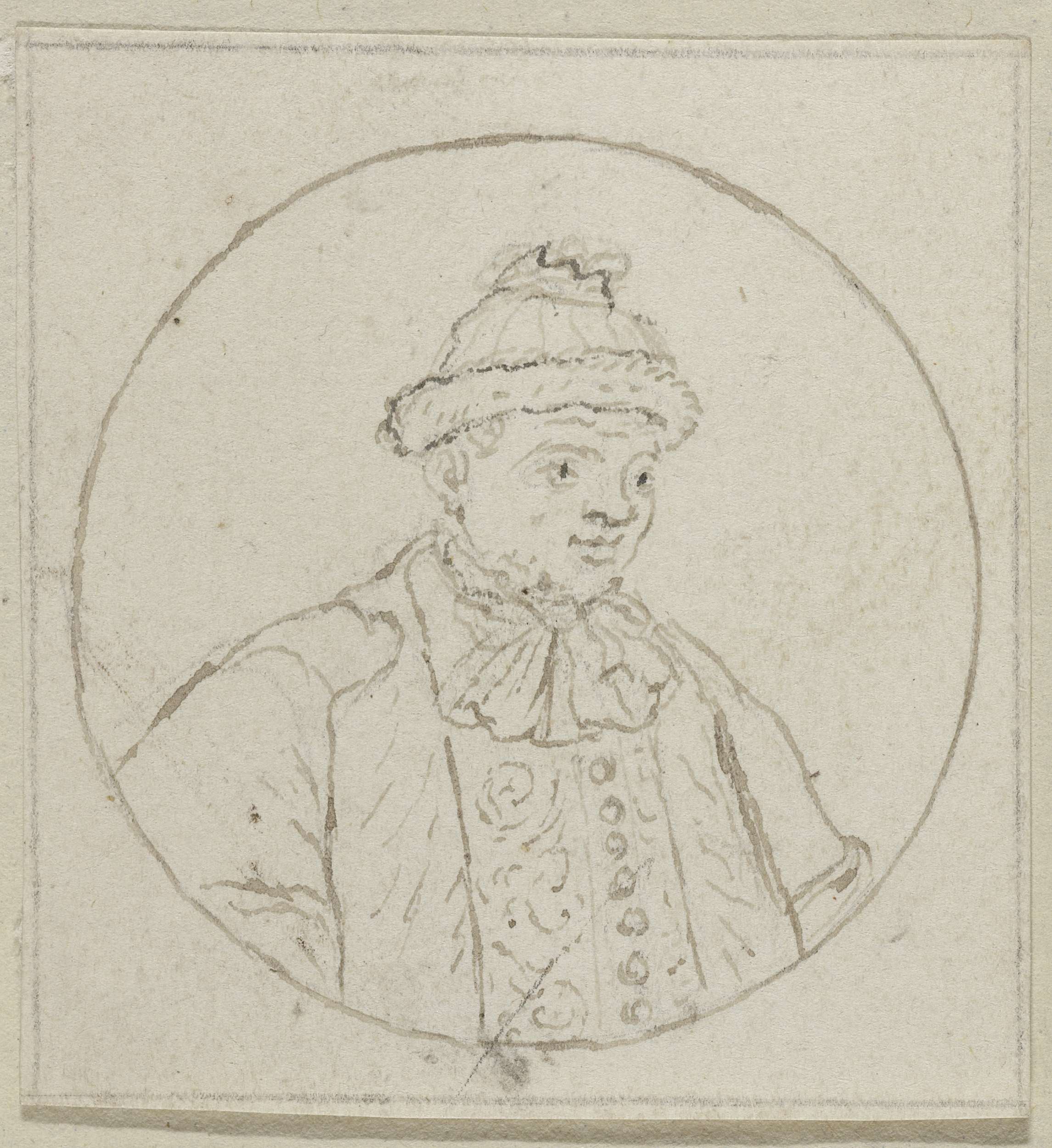Buste van een man met muts in een cirkel