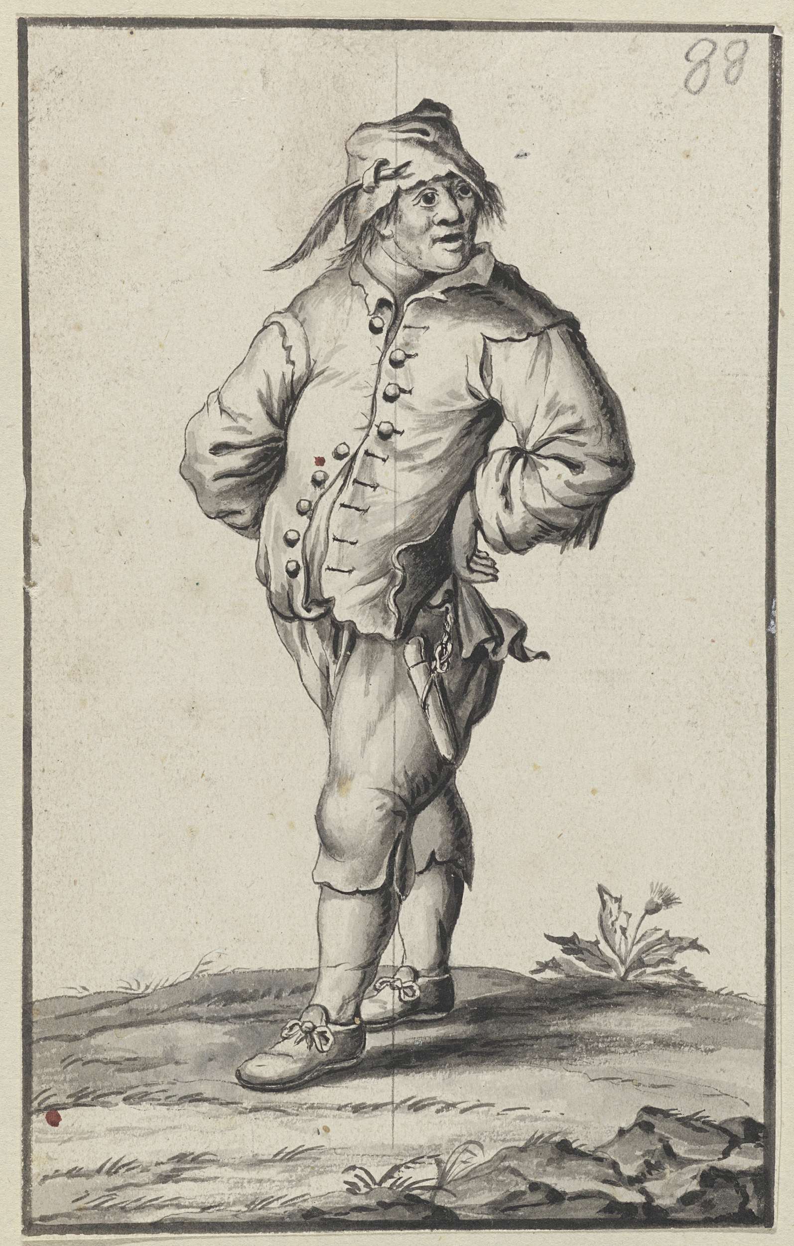 Staande man met de handen in de zij