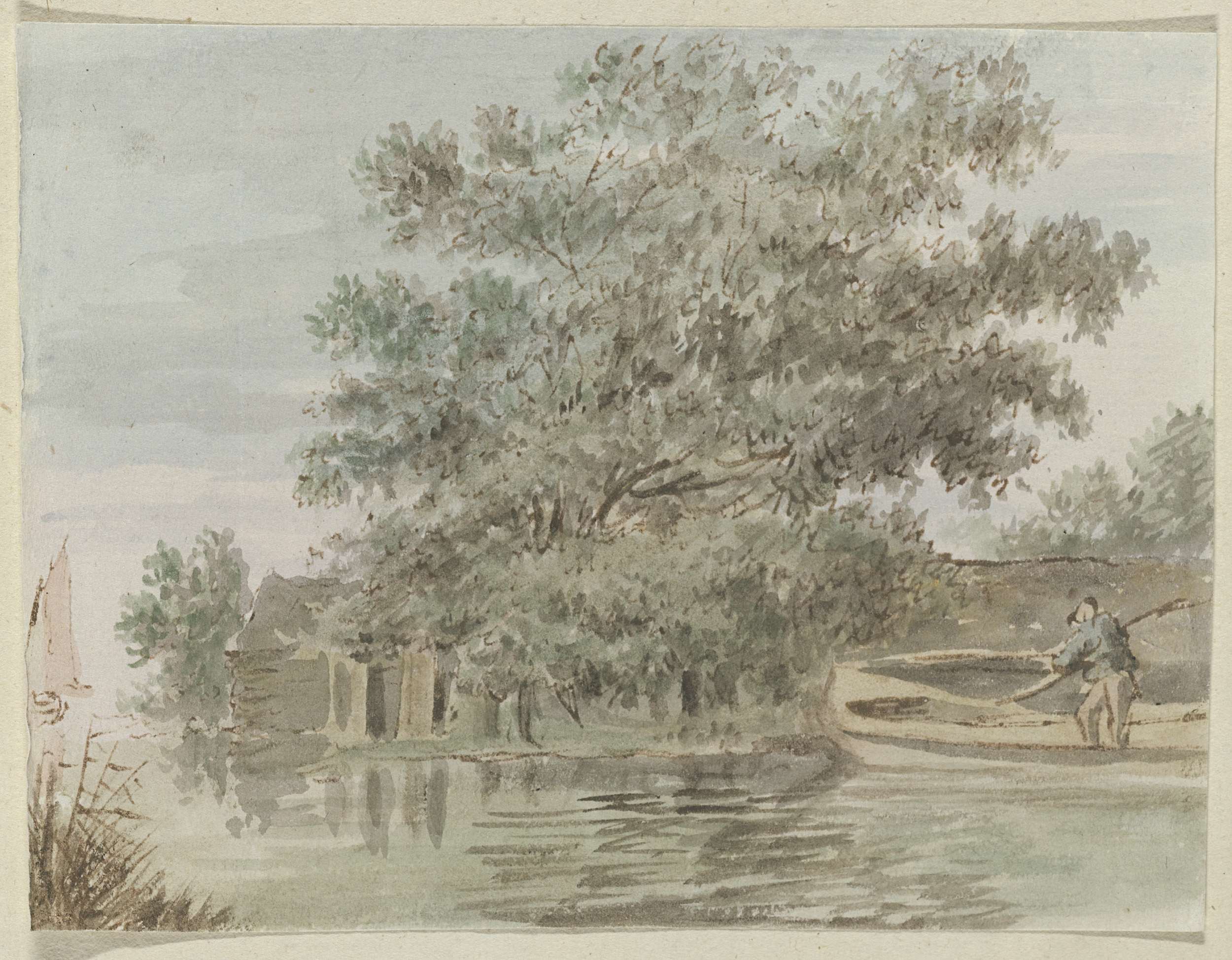 Man bij boot aan een oever