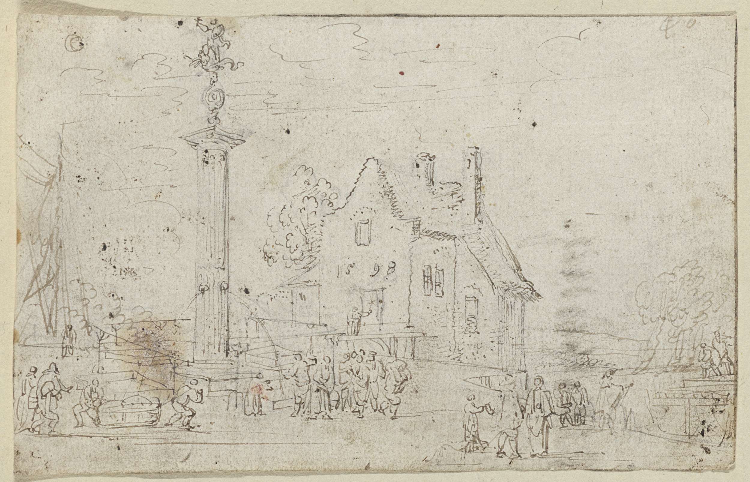 Fontein in de vorm van een zuil voor een huis