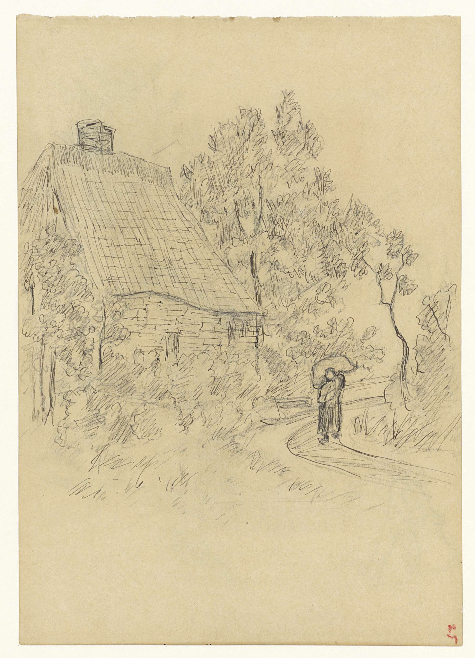 Huis aan een landweg met een figuur