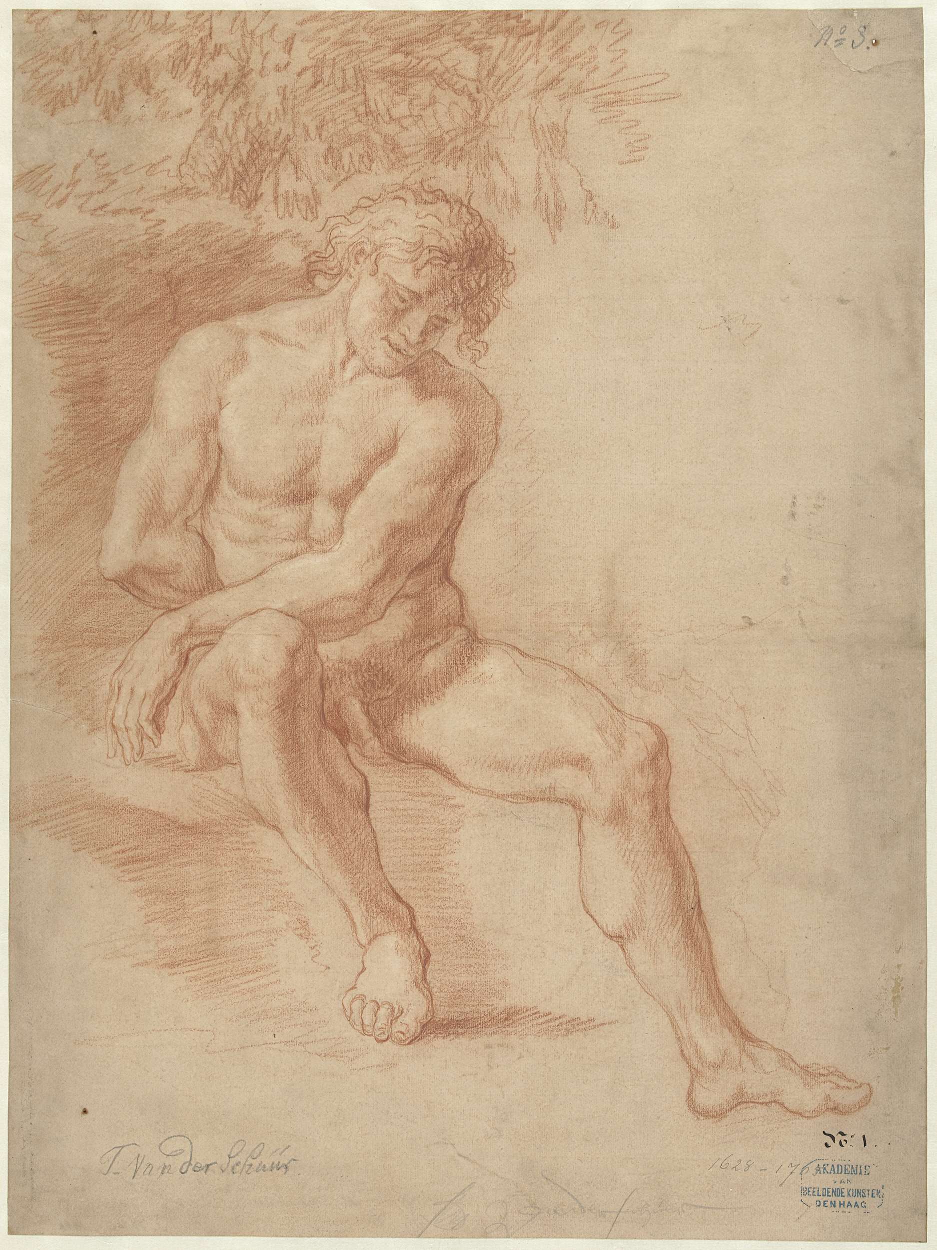 Zittend mannelijk naakt