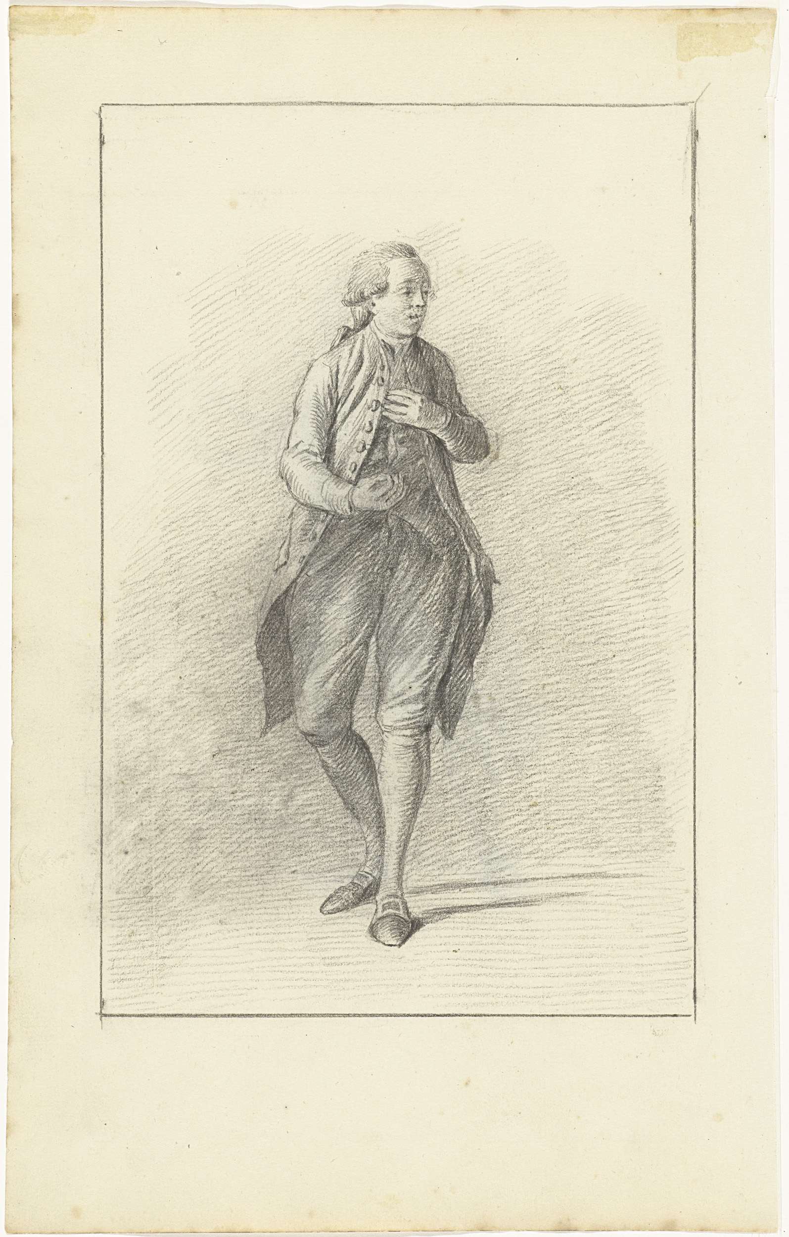 Staande man, frontaal gezien, kijkend naar rechts