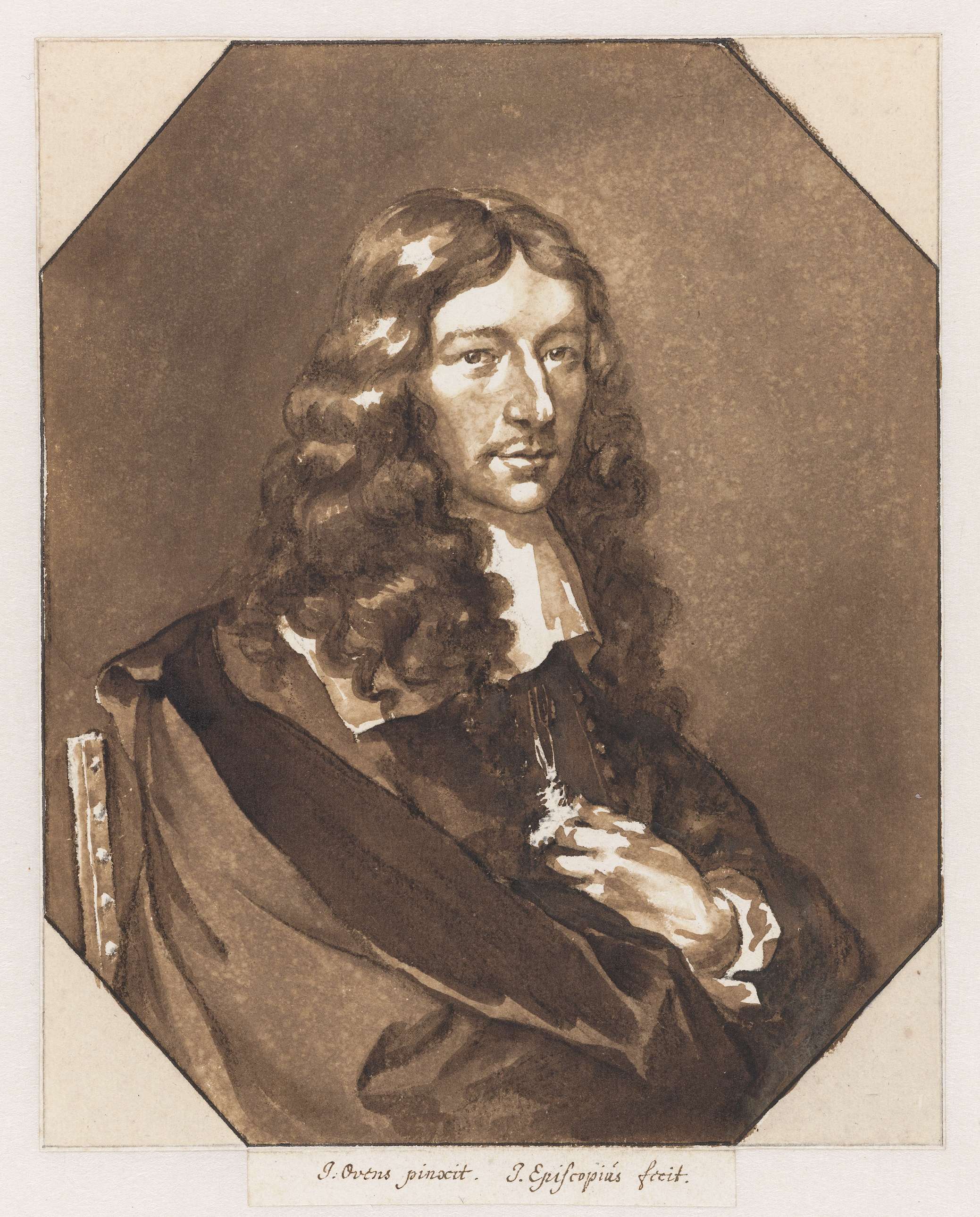 De Bisschop kopieerde hier een geschilderd portret van hemzelf dat waarschijnlijk verloren is gegaan. Wie de maker was is onduidelijk. De schilder beeldde De Bisschop af als een zelfbewuste heer van stand, zonder enige verwijzing naar zijn liefde voor de schone kunsten.