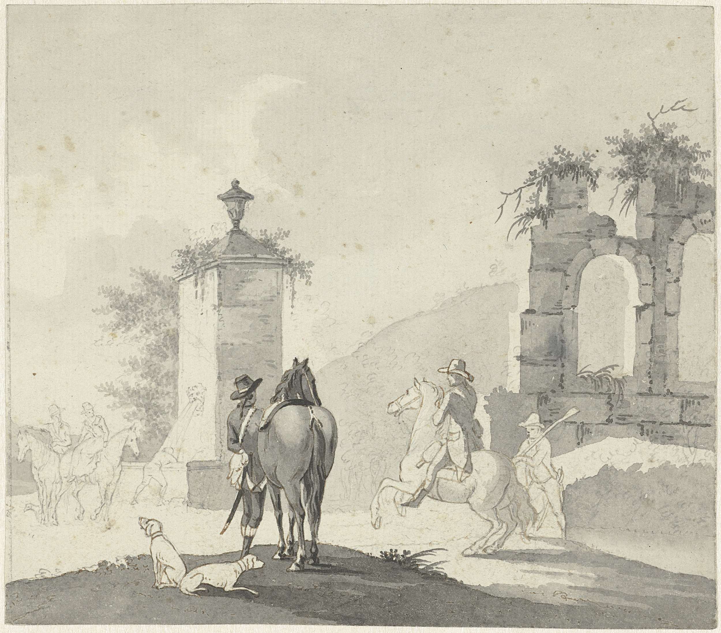 Ruiters bij een drinkplaats