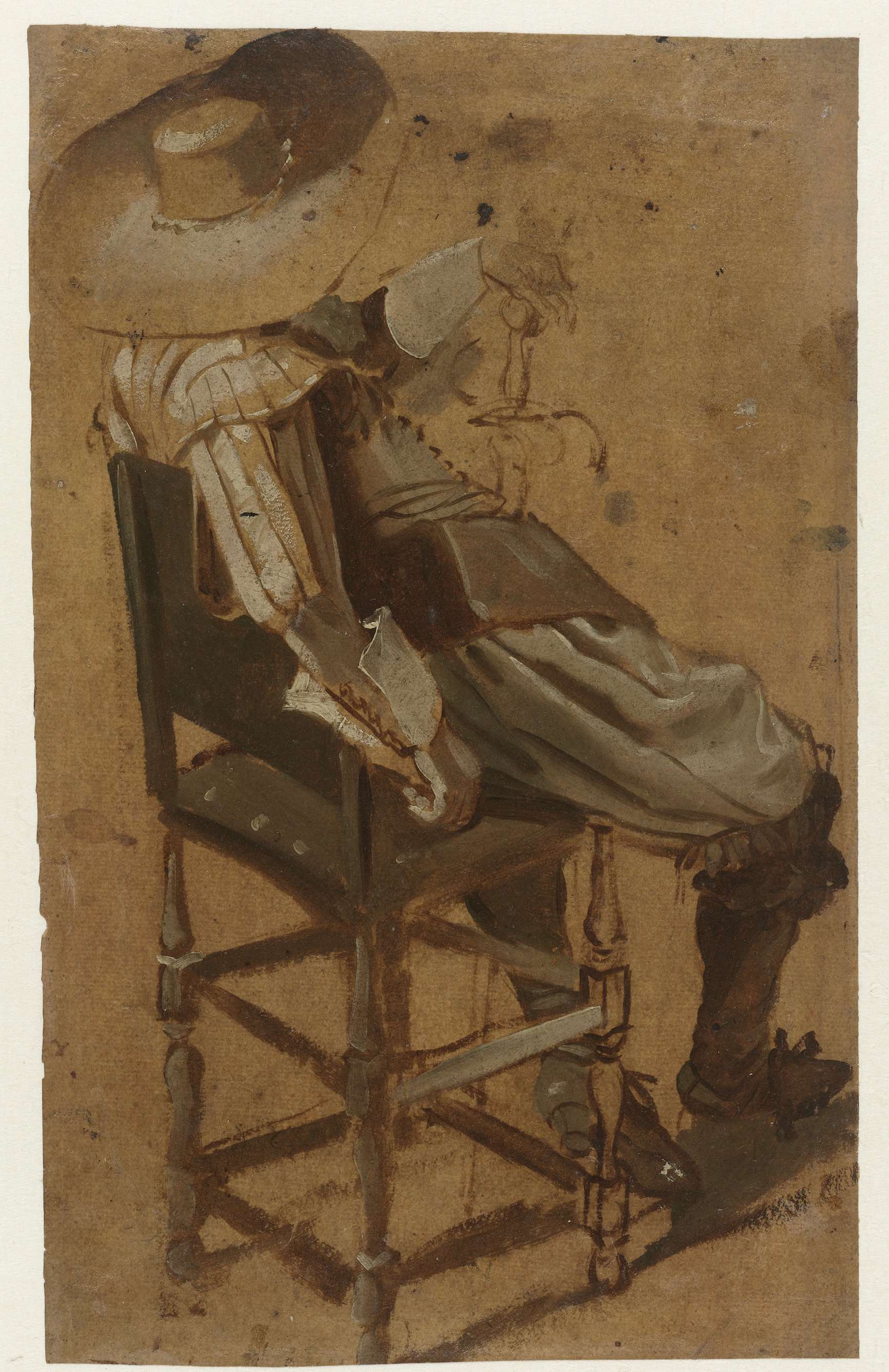 Zittende man met zwaard