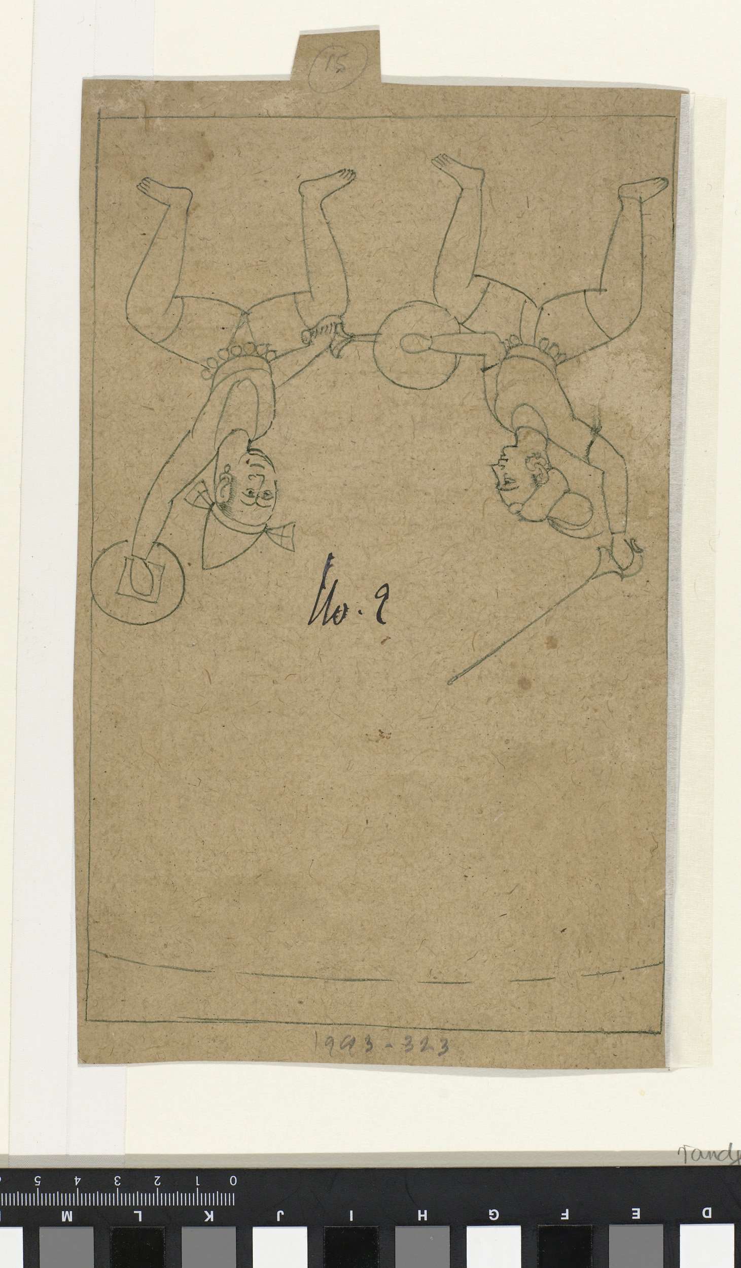Schets van twee schermers die elkaar met degens te lijf gaan