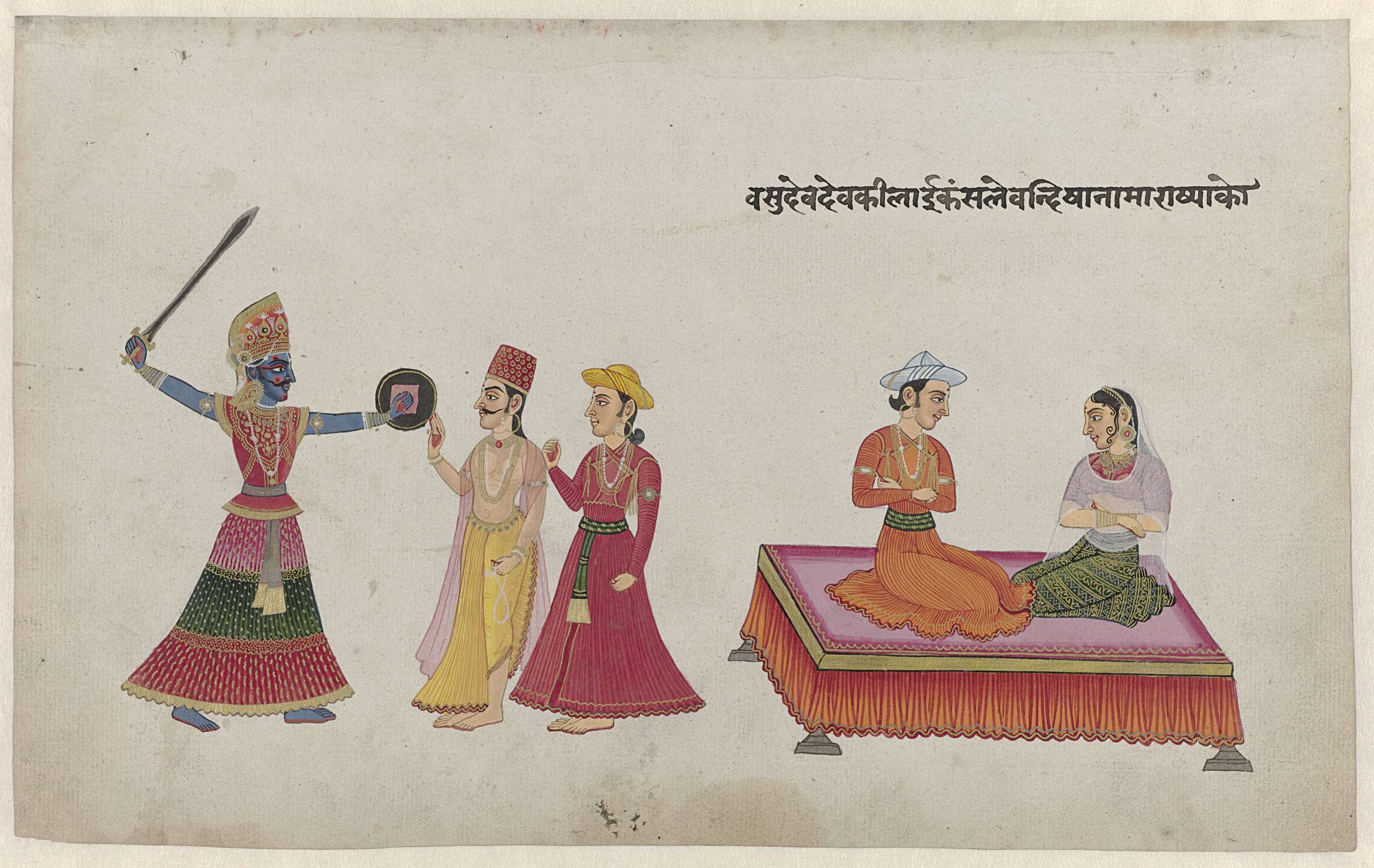 Koning Kamsa, Vasudeva en Devaki en twee andere figuren