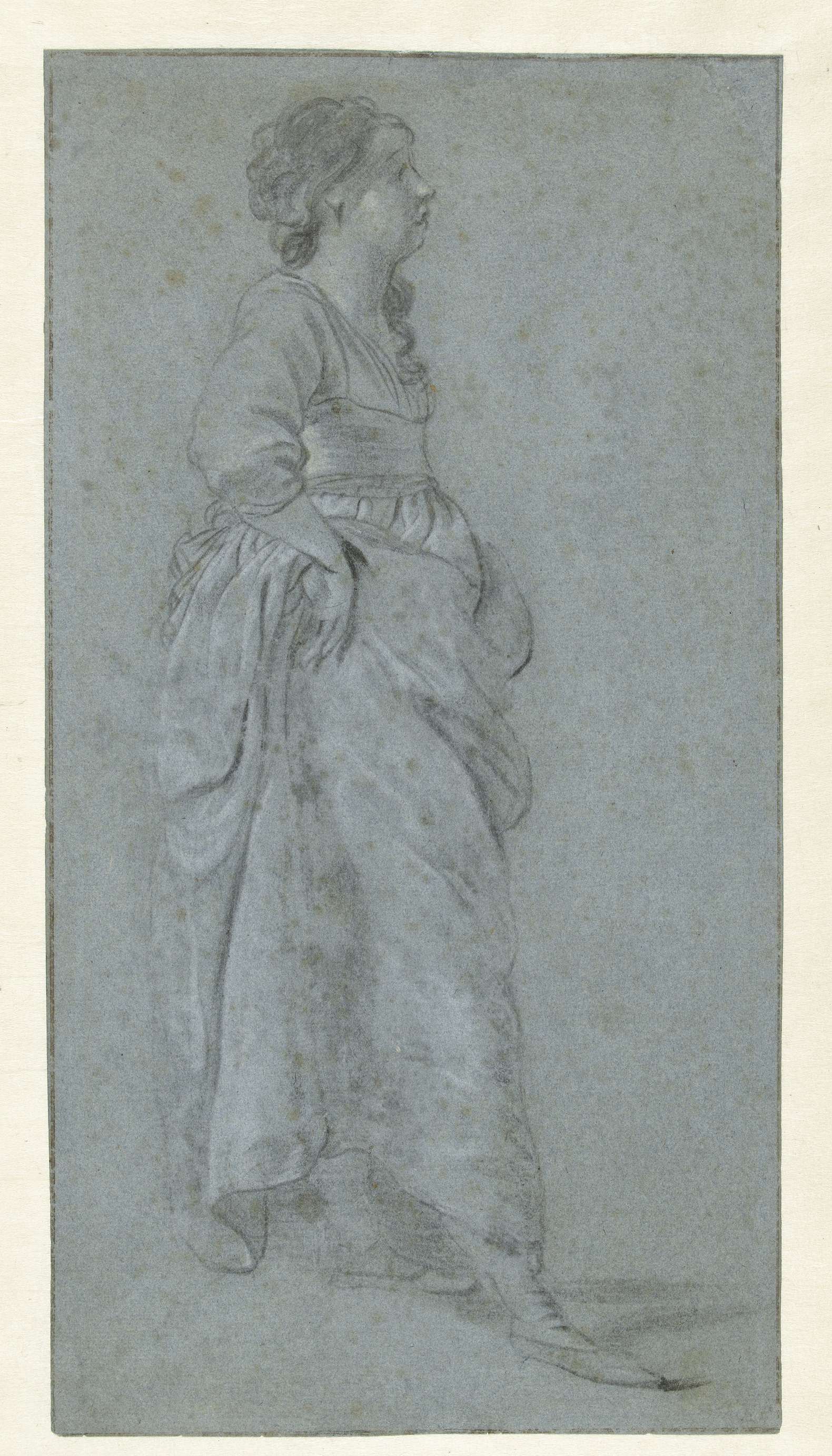 Staande vrouw in profiel naar rechts, studie voor een Minerva.