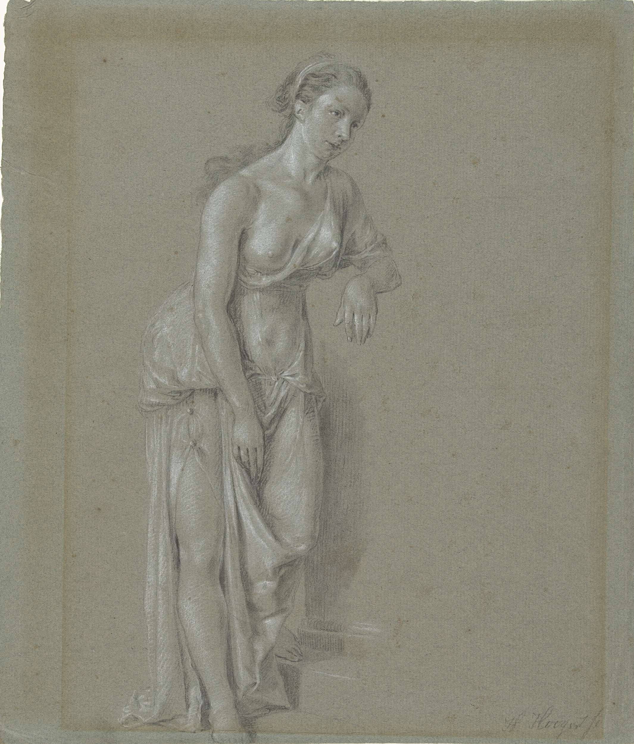Figuurstudie van een vrouw in een klassiek gewaad, driekwart naar rechts staand