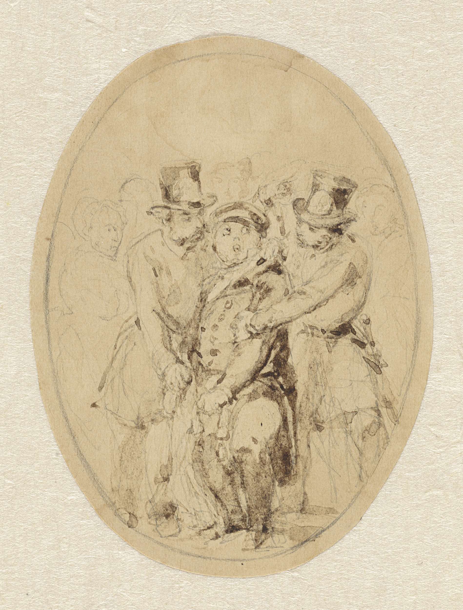 Man wordt opgebracht door twee heren in burger