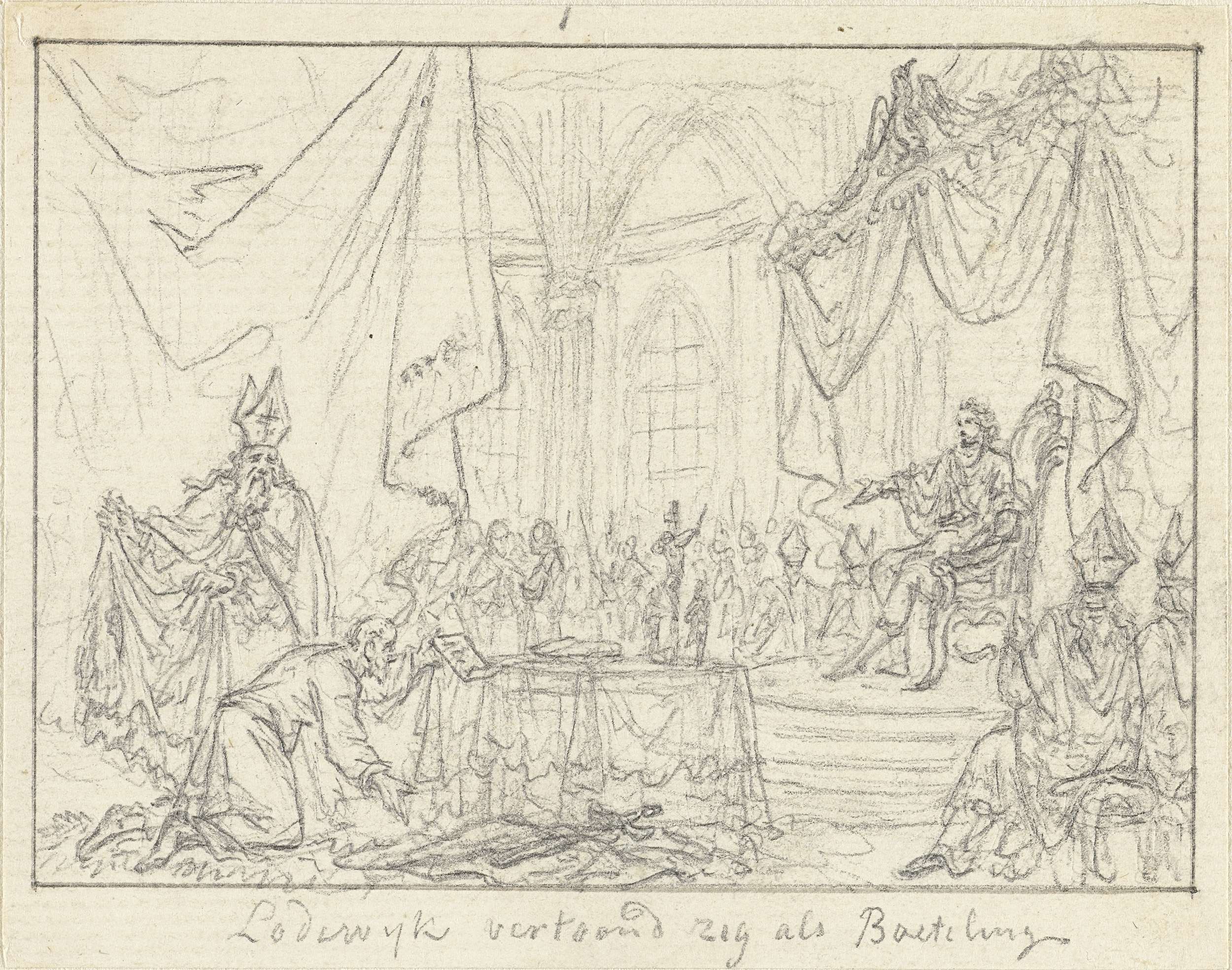Lodewijk (de Vrome, 778-840?) als boeteling. Ontwerp voor een prent.