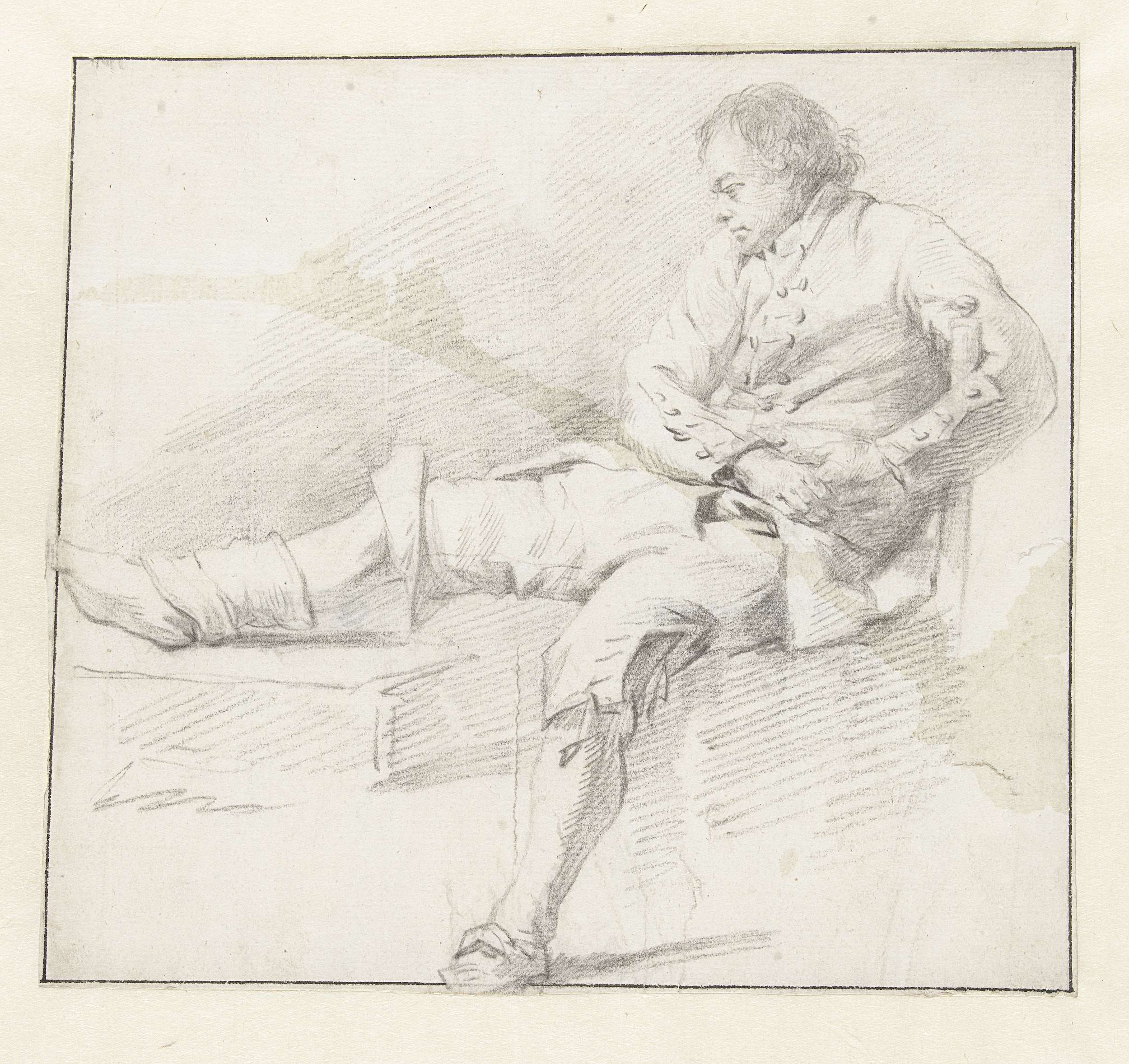 Figuurstudie van een zittende man, naar links