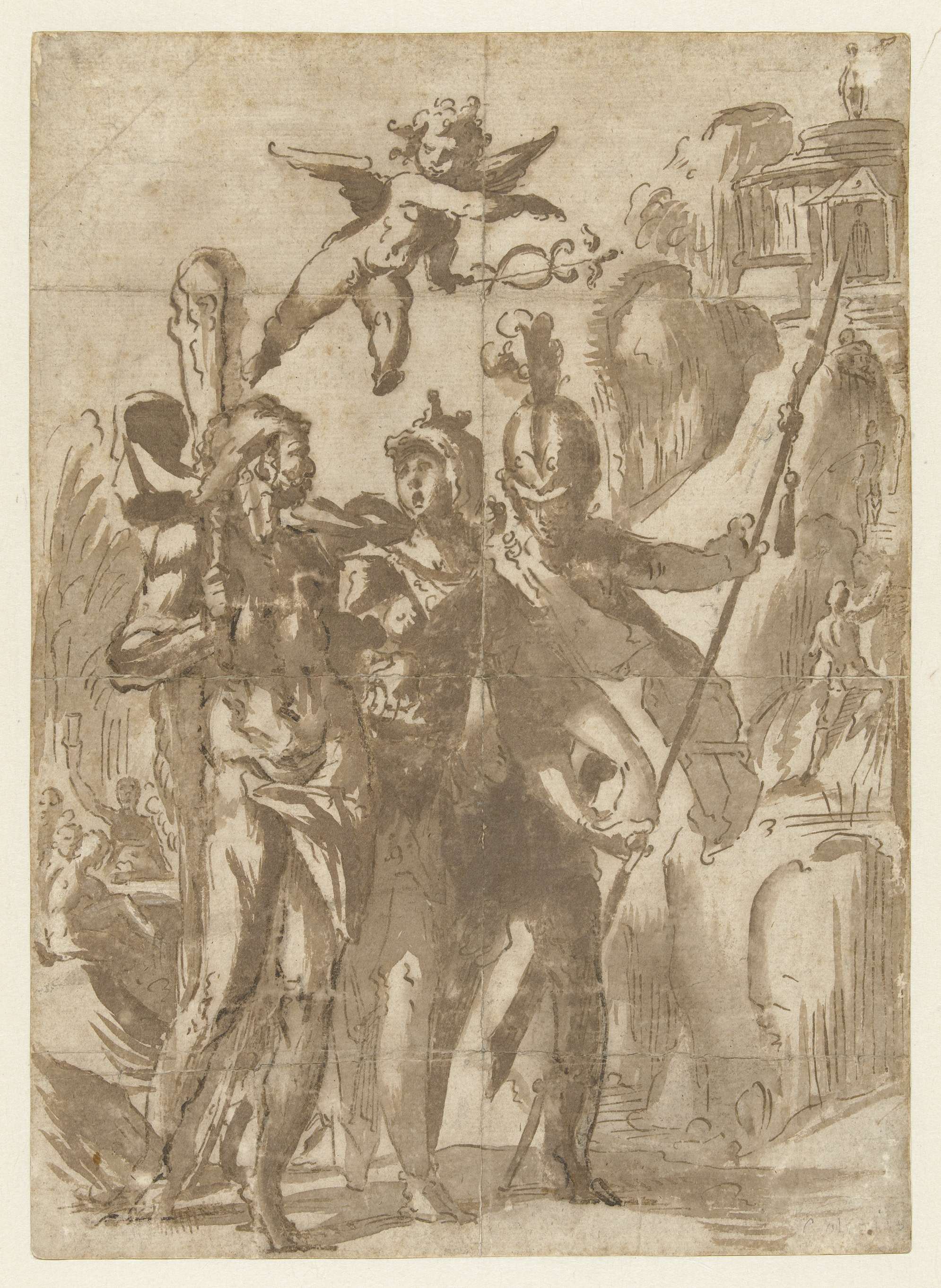 Hercules en Scipio geleid door Minerva op het pad der deugd