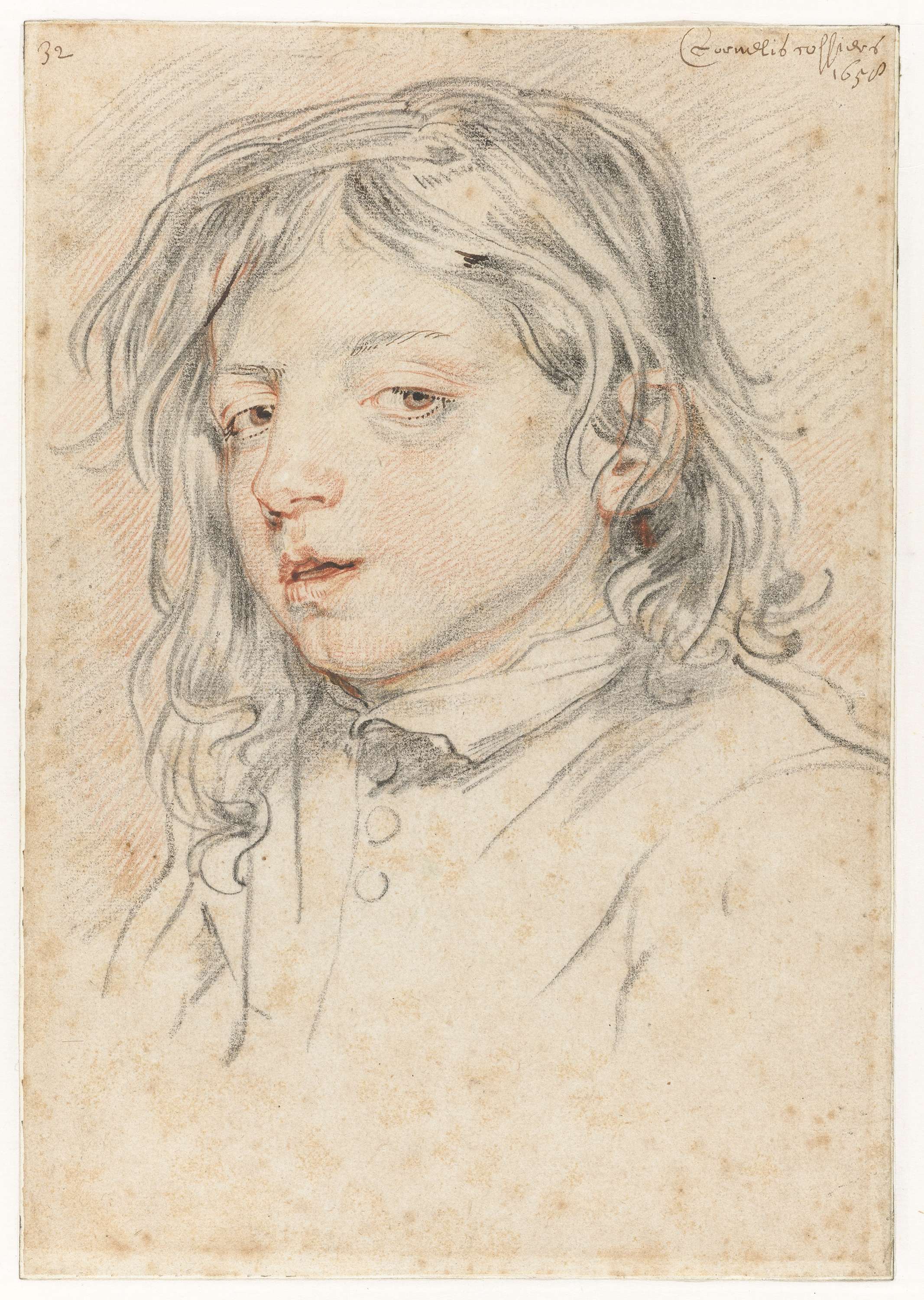 Kunstenaars die hun eigen kinderen tekenen weten vaak een heel spontane directheid te behouden. De Antwerpse schilder Jan Cossiers lukt dat hier uitstekend. Dit is zijn zoon Cornelis, zoals rechtsboven leesbaar is, geportretteerd in 1658. De jongen, met een heerlijk warrige haardos, wekt de indruk dat hij nu pas in de gaten heeft dat hij ...