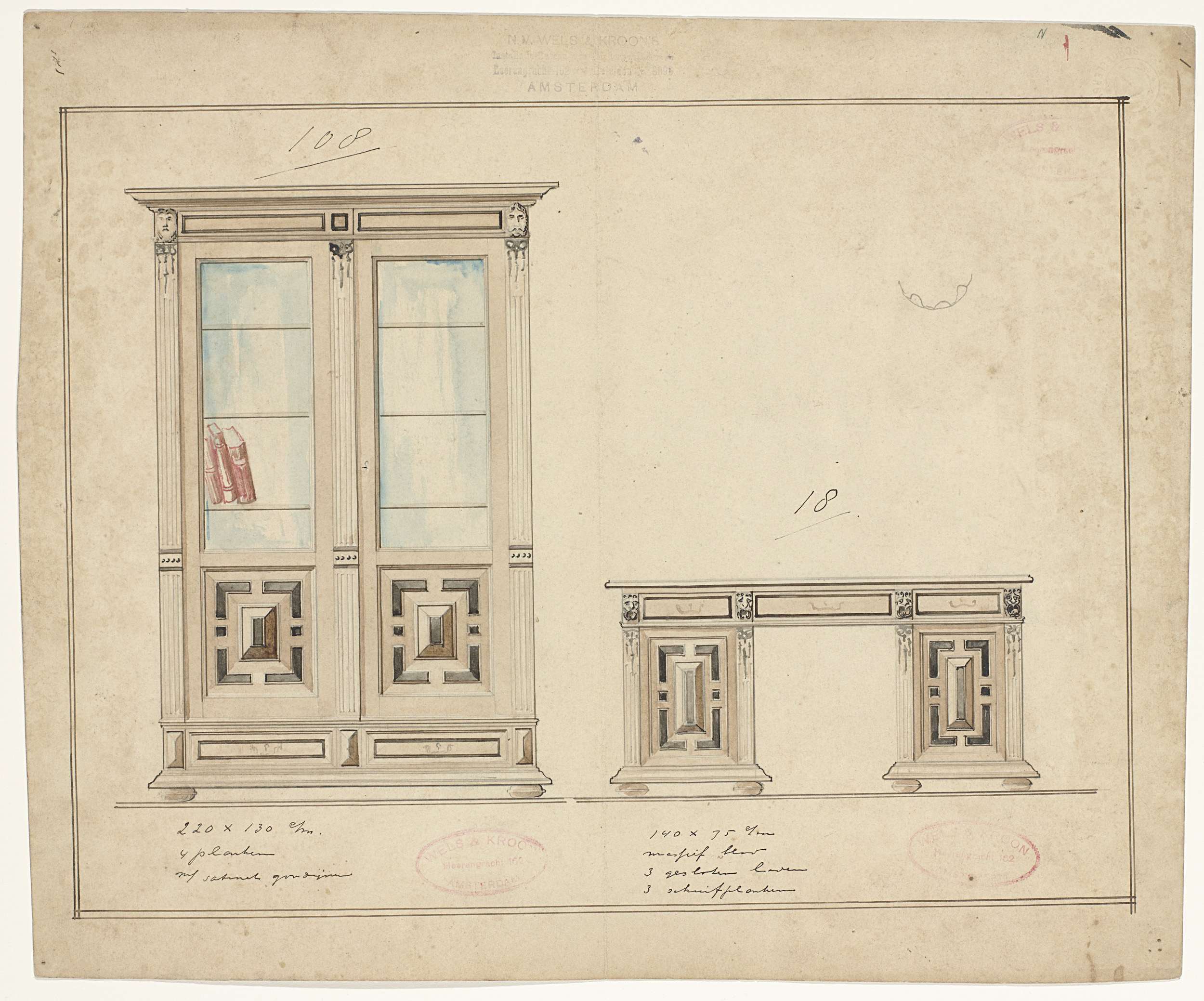 Ontwerp voor een boekenkast en een bureau voor Jan David Berkhout.