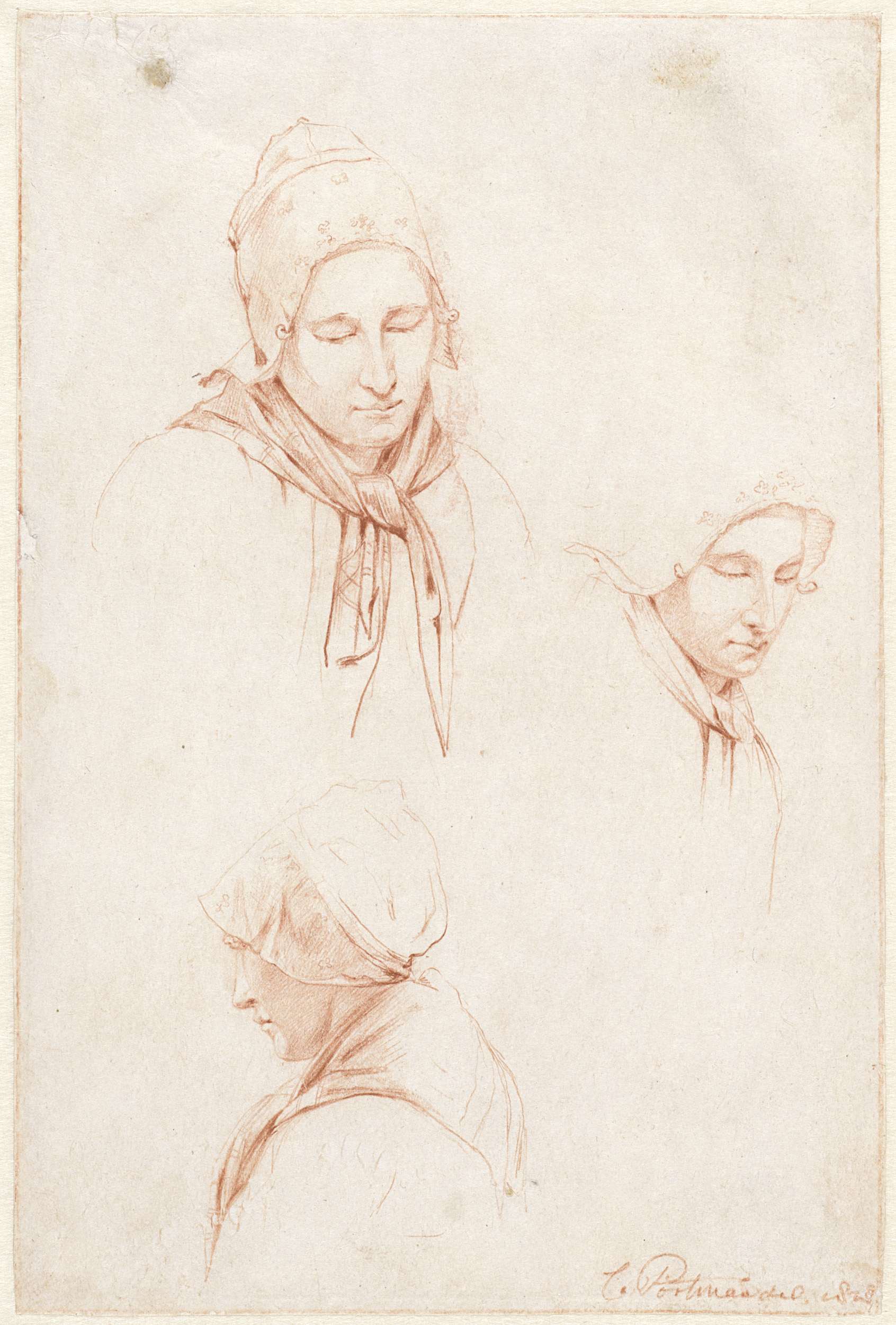 Schetsen van drie vrouwenhoofden