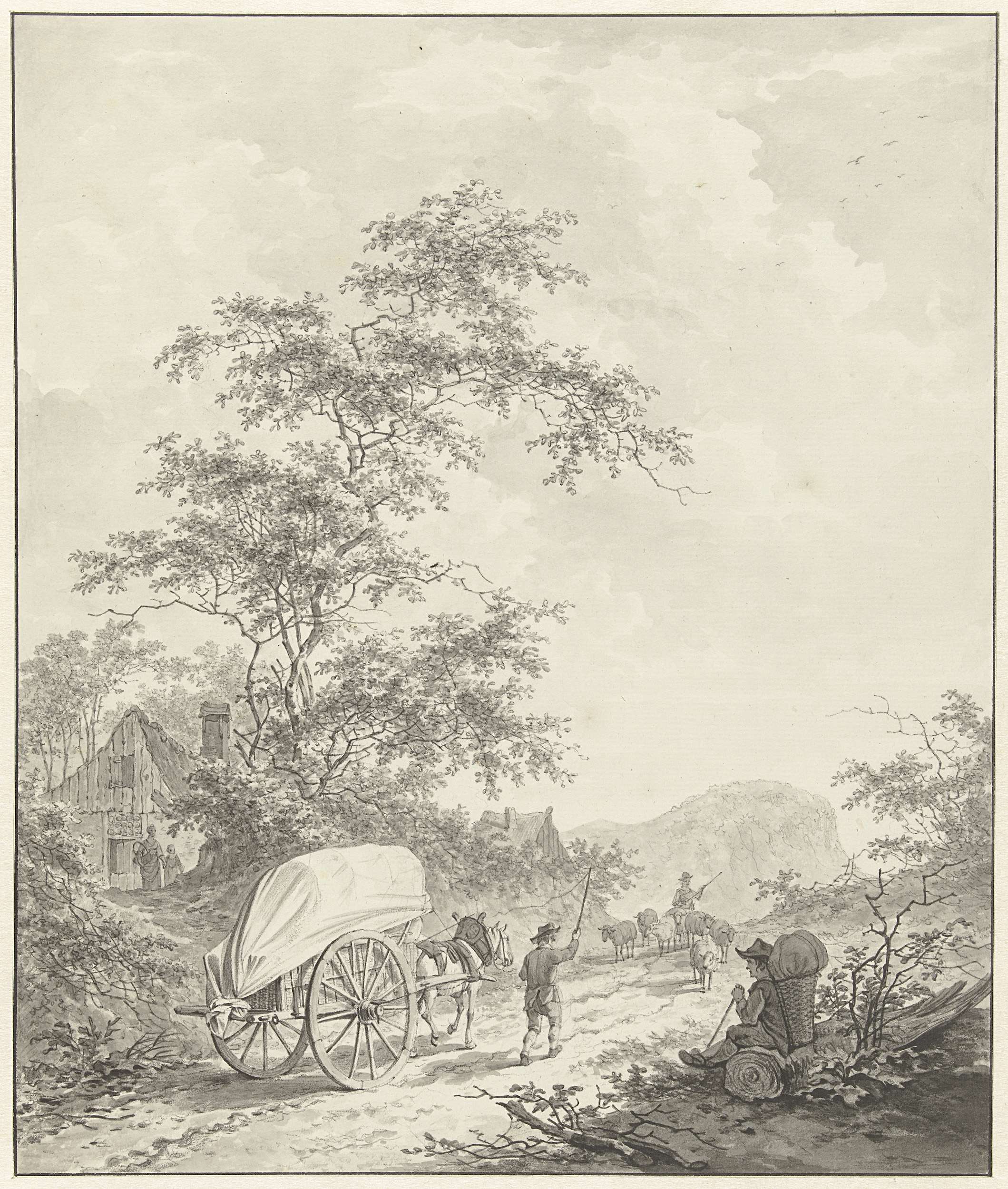 Landschap met paard en wagen