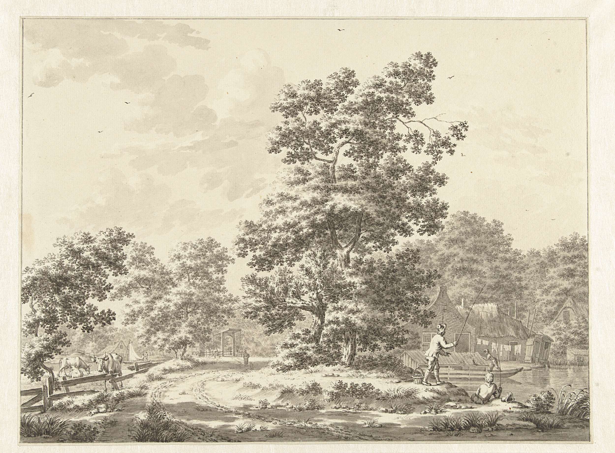 Landschap met rechts twee hengelaars