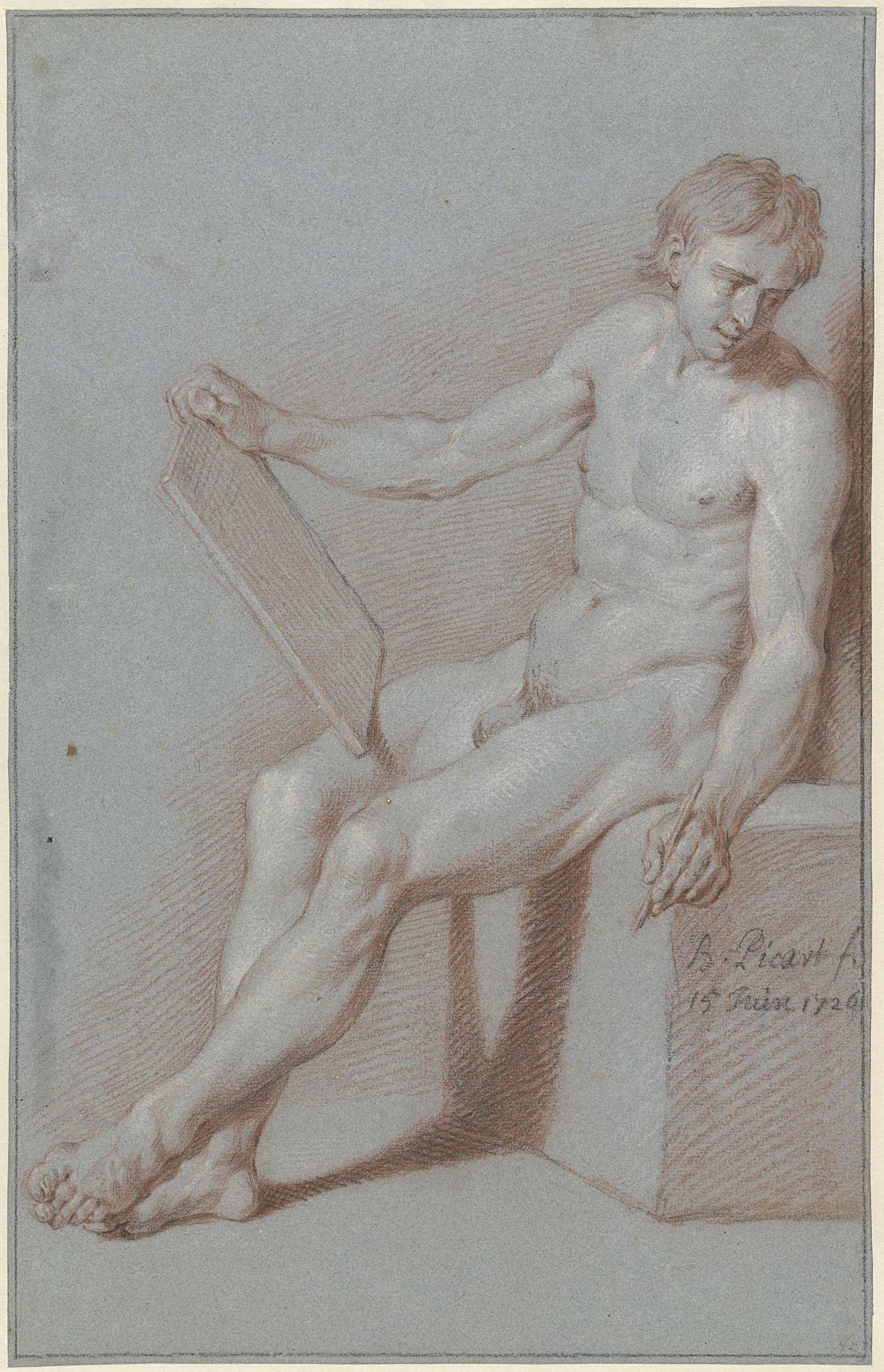 Zittend academienaakt, als tekenaar