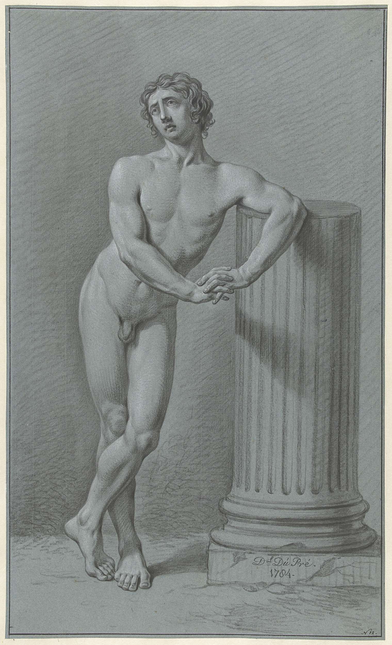 Staand mannelijk naakt, leunend tegen afgebroken zuil