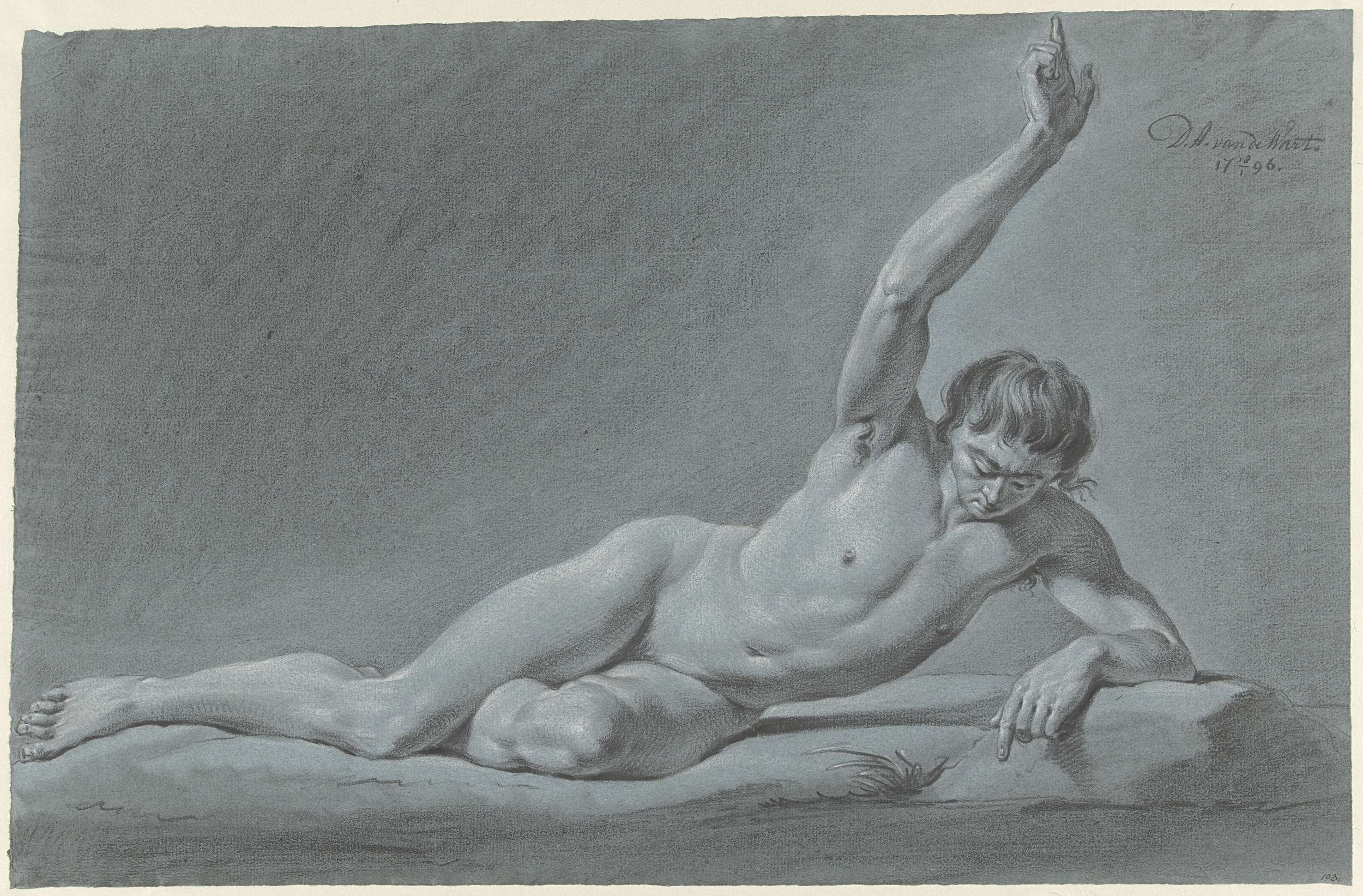 Liggend mannelijk naakt, de rechterarm geheven. Rechts: no. 103.